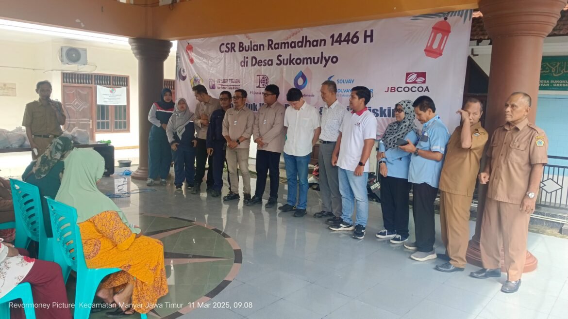 GRESIK, SabdaNews.com – Pemerintah Desa (Pemdes) Sukomulyo, Kecamatan Manyar, Kabupaten Gresik terus memberikan pelayanan yang amanah bagi warganya, terutama pada bulan suci Ramadan. Kali ini, Desa yang di Nakhodai H. Subiyanto ini di bulan suci Ramadan kembali menyalurkan Corporate Social Responsibility (CSR) perusahaan perusahaan di wilayah Desa Sukomulyo. Selasa, (11/3/2025).