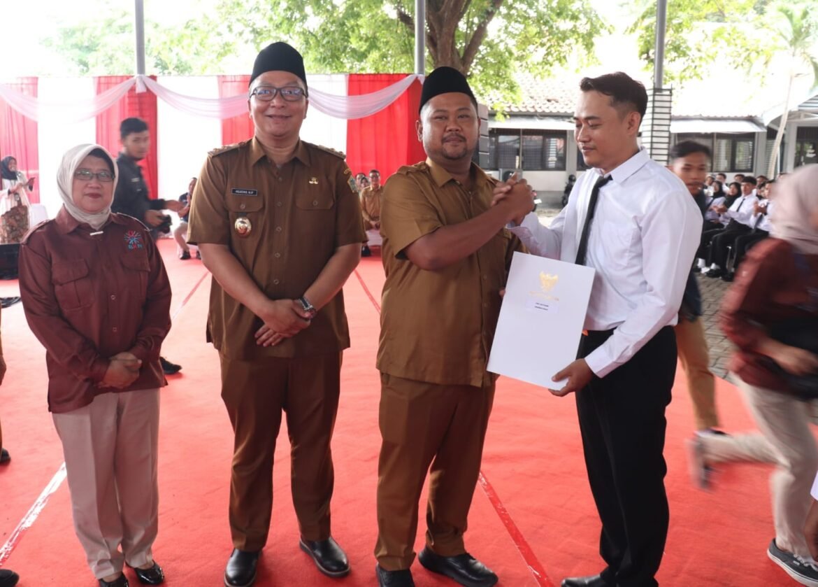 GRESIK, SabdaNews.com — Pemerintah Kabupaten Gresik mencatatkan diri sebagai kabupaten/kota pertama di Provinsi Jawa Timur yang menyerahkan Surat Keputusan (SK) Pengangkatan Calon Pegawai Negeri Sipil (CPNS) Formasi Tahun 2024. Sebanyak 474 CPNS menerima SK Pengangkatan dalam sebuah upacara yang digelar di halaman belakang Kantor Bupati Gresik pada Senin (21/4/2025).
