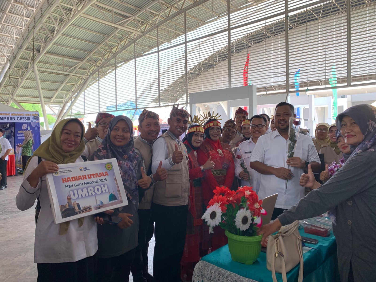 Kepala Dinas Pendidikan Kabupaten Gresik, Hariyanto, menyampaikan apresiasi setinggi-tingginya kepada seluruh guru yang telah berjuang dan berdedikasi dalam mencerdaskan anak bangsa. Ia menegaskan bahwa Hari Guru Nasional bukan sekadar seremoni, tetapi momentum memperkuat profesionalisme pendidik untuk mewujudkan Generasi Emas 2045. “Penghargaan ini diberikan untuk memantik semangat para guru agar semakin kuat dalam mendidik dan mencerdaskan bangsa. Dedikasi guru hari ini adalah pondasi masa depan Indonesia,” ungkapnya.