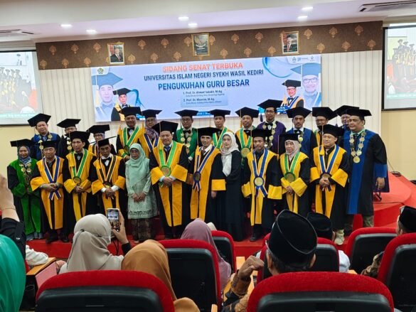 KEDIRI,SabdaNews.com-  Mengawali pendidikan dari pesantren, melanjutkan di UIN Wali Songo Semarang dan UIN Sunan Ampel Surabaya. Melanjutkan di UIN Syarif Hidayatullah Jakarta. Bekal keilmuan tersebut akhirnya diabdikan di UIN Syeh Wasil Kediri. “Kebenaran itu alhaqqu min robbik. Falaa takunannya minal mumtarin,” kata Prof. Dr. Ahmad Subakir, M.Ag. dalam orasi pengukuhannya sebagai Guru Besar UIN Syeh Wasil Kediri, Sabtu (15/11/2025).