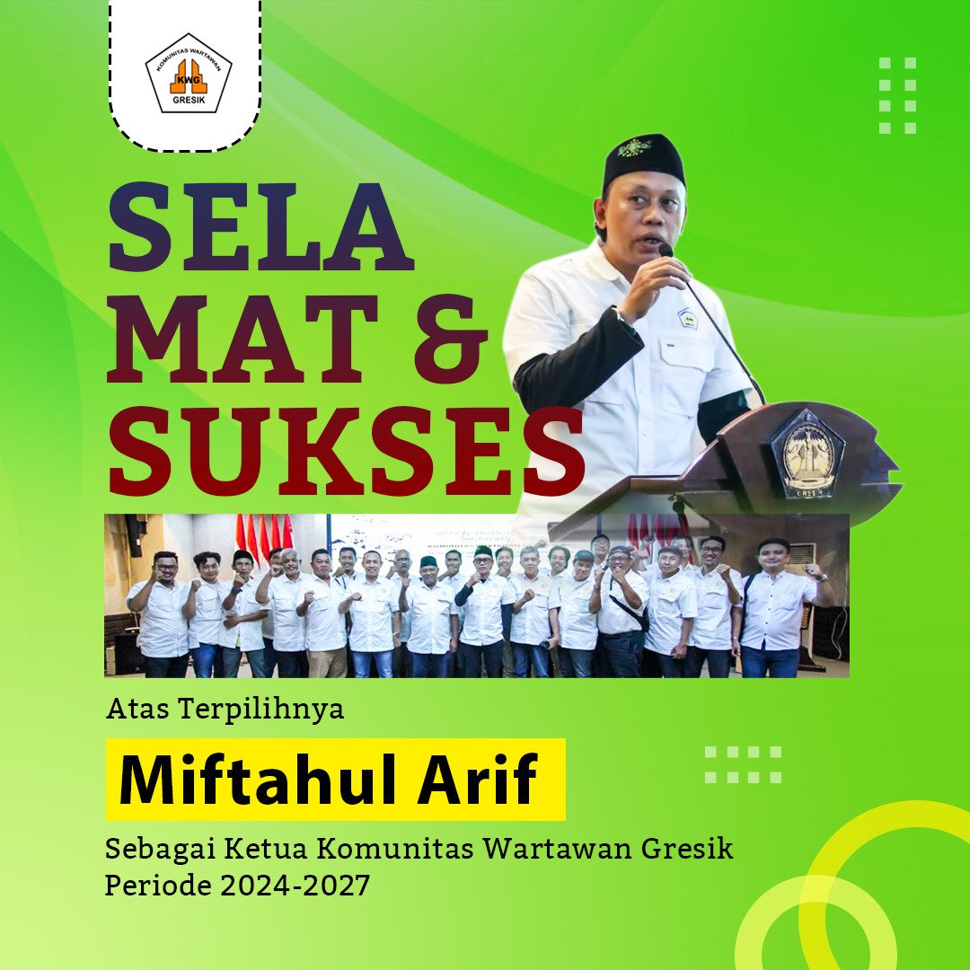 GRESIK, SabdaNews.com – Jurnalis CNN Indonesia, Miftahul Arif, kembali dipercaya memimpin Komunitas Wartawan Gresik (KWG) untuk periode 2024-2027.  Terpilih secara aklamasi, Miftah ditetapkan sebagai Ketua KWG melalui  Musyawarah Anggota ke-10 (Musang X) yang berlangsung di Ruang Putri Cempo, Kompleks Kantor Pemkab Gresik, Sabtu (28/12/2026) kemarin.