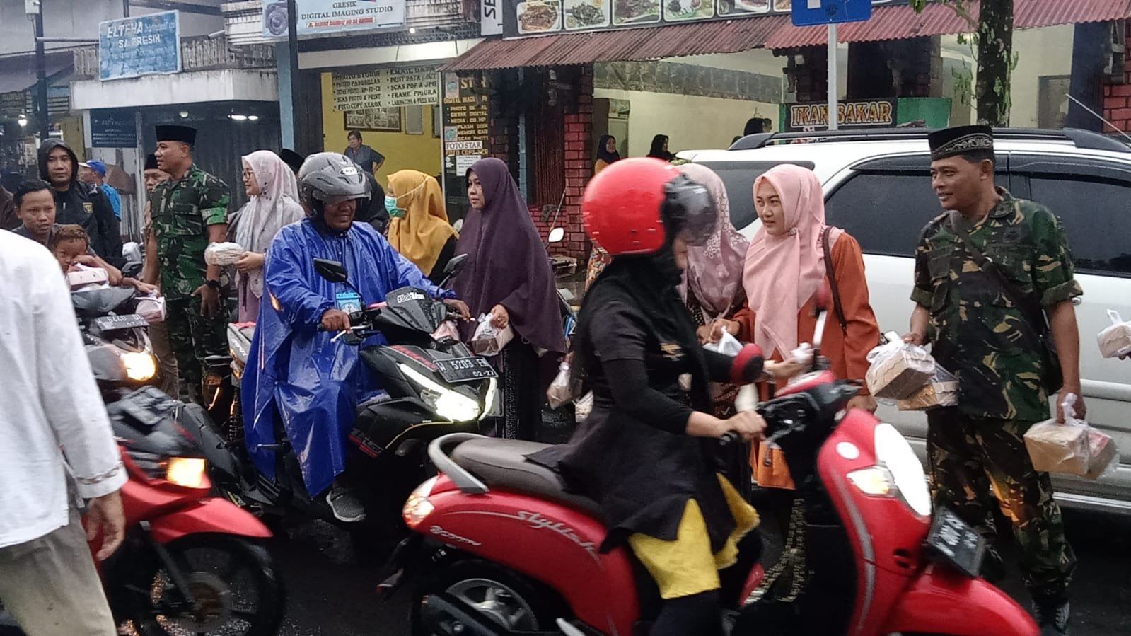 GRESIK,SabdaNews.com- Momen Ramadan dimanfaatkan Komunitas Wartawan Gresik (KWG) untuk berbagi. Dengan menggandeng stakeholder terkait, insan pers ini membagikan ratusan takjil di Kawasan Bandar Grisse. Meski dalam kondisi hujan, 400 bingkisan takjil habis dibagikan kepada warga yang melintas di sekitar Jalan Basuki Rahmat (Bandar Grisse).