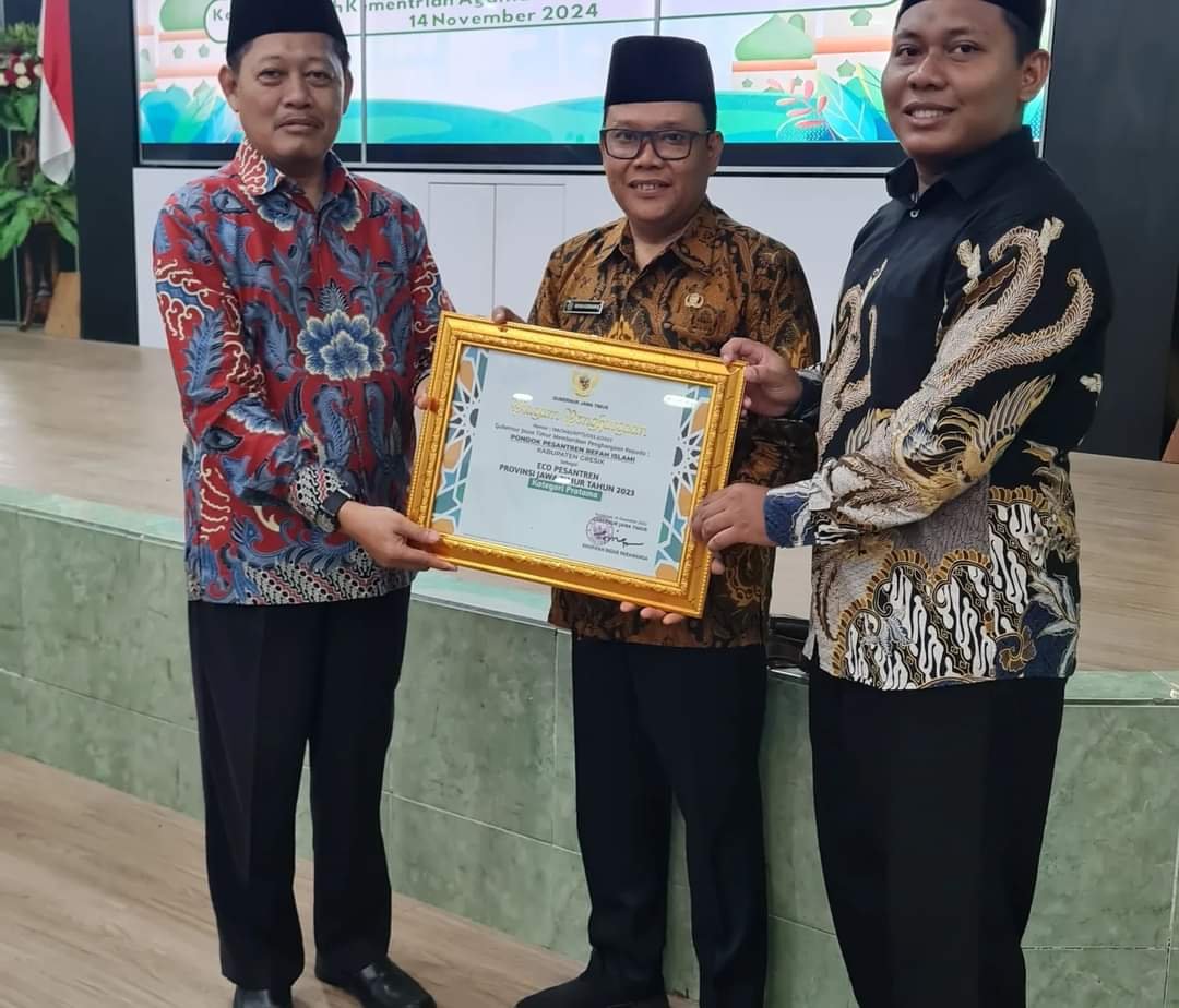 GRESIK, SabdaNews.com- Alhamdulillah, hari ini. Kamis , 14 November 2024, bertempat di Aula Al Ikhlas Kantor Wilayah Kemenag Provinsi Jatim, Pondok Pesantren (PP) Refah Islami menerima Penghargaan Eco Pesantren Tingkat Pratama peringkat II dari Dinas Lingkungan Hidup Provinsi Jatim. Penghargaan istimewa tersebut diterima langsung oleh Mudir Pesantren Refah Islami KH. Farid Dhofir, Lc, M.Si.