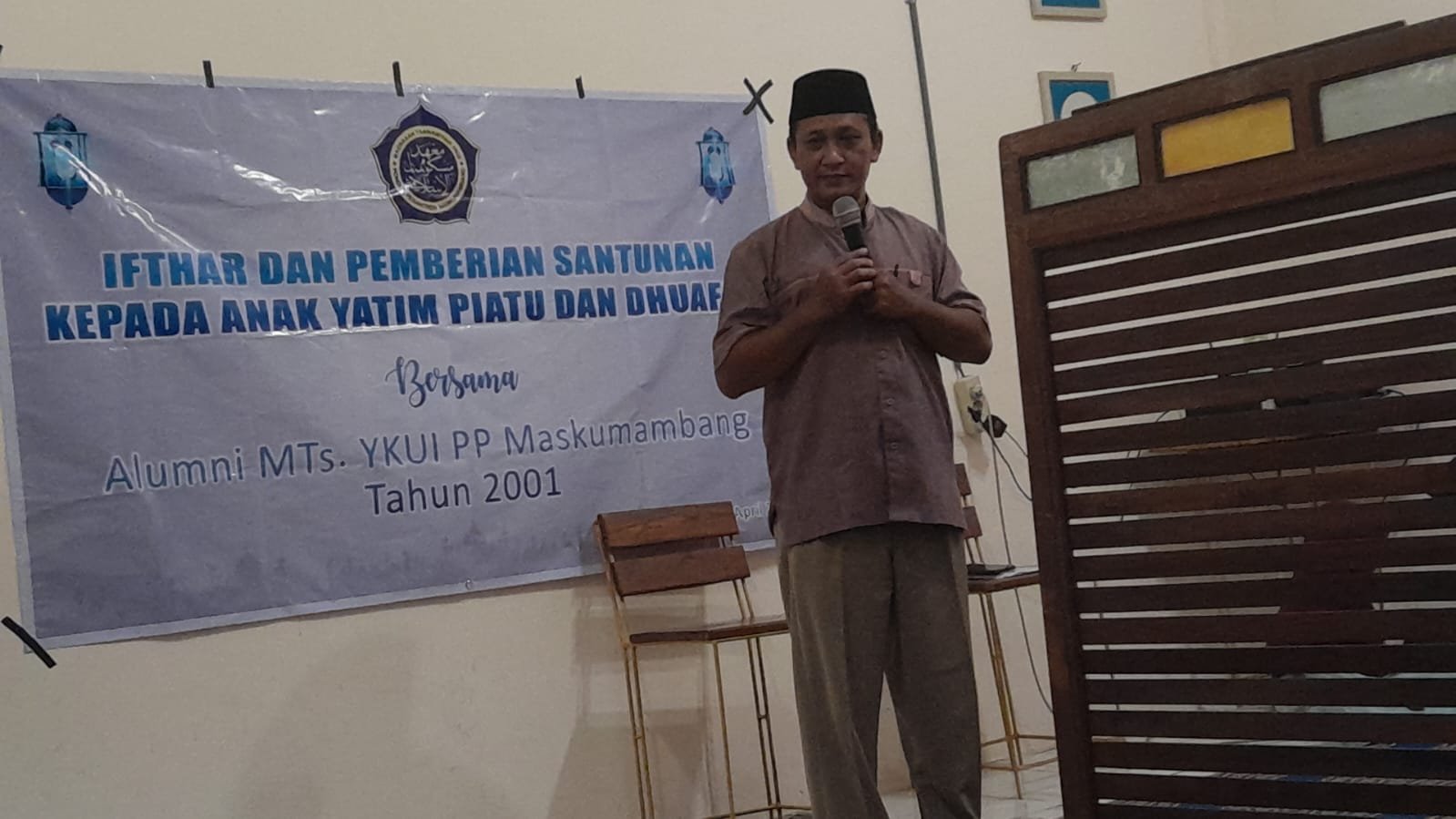 Ustadz FAKHRUL IMAM, S.Pd.I mengungkapkan,” Jazakumullah Ahsanal Jaza atas kehadiran dan kebersamaan dari sahabat-sahabatku dalam kegiatan IFTHAR dan santunan ini, Kami merasa senang dan bahagia dengan kegiatan yang dilaksanakan pada hari ini. Meski tempatnya sangat sederhana, namun tidak mengurangi sedikitpun makna dari kegiatan in, dan nampak perasaan bagi Alumni MTS YKUI Maskumambang 2001, rasa haru dan bangga yang mereka rasakan.” Ungkap Ustadz FaKhrul Imam, S.Pd.I.