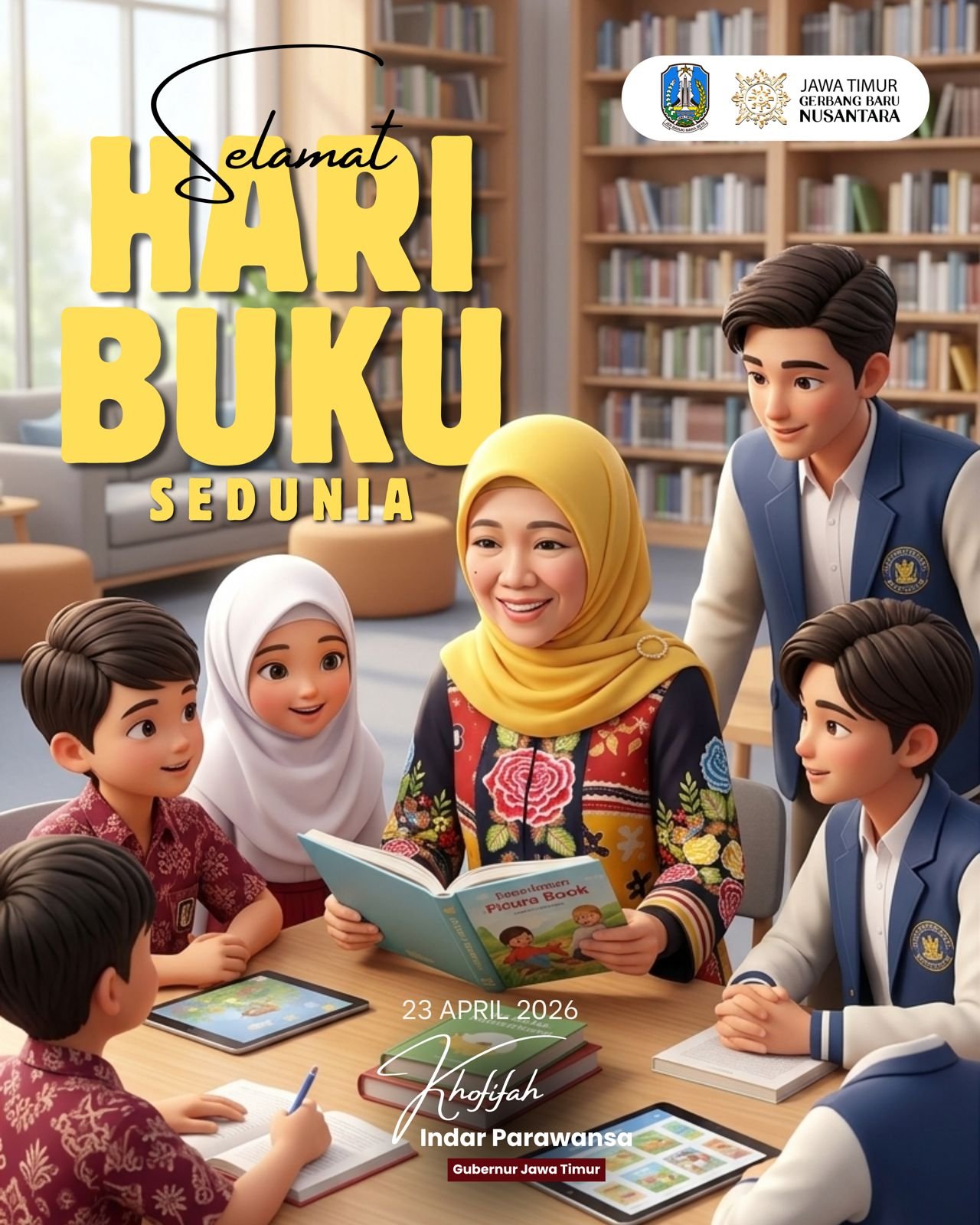 Khofifah mengatakan Hari Buku Sedunia menjadi momentum penting untuk menghargai buku sebagai sarana transfer ilmu, pelestarian budaya, serta jembatan pemahaman antar generasi.