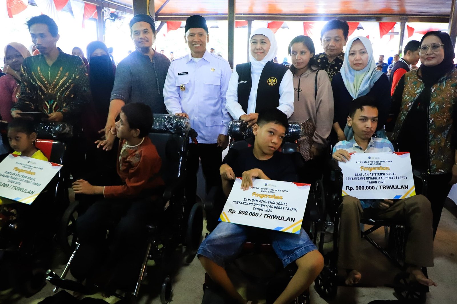 Berbagai bansos dan yang disalurkan Gubernur Khofifah, yakni ASPD kepada 124 orang penerima berupa uang Rp3.600.000/tahun dan Sembako. Penyerahan Alat Bantu Mobilitas Lansia dan Penyandang Disabilitas sebanyak 31 unit senilai Rp165.234.000.