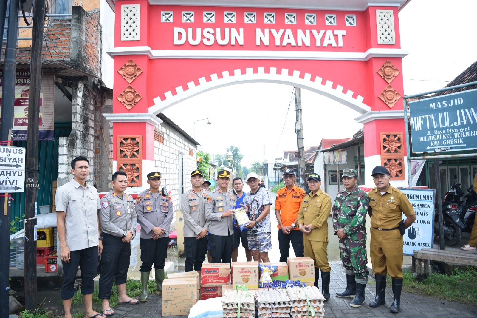 GRESIK ,SabdaNews.com – Polres Gresik bersama Forkopimda dan perangkat desa menyalurkan bantuan sosial (baksos) kepada masyarakat yang terdampak banjir di wilayah Kecamatan Benjeng, Kabupaten Gresik.Selasa(10-06-2025) Penyerahan bantuan dilaksanakan di Posko Banjir Desa Morowudi