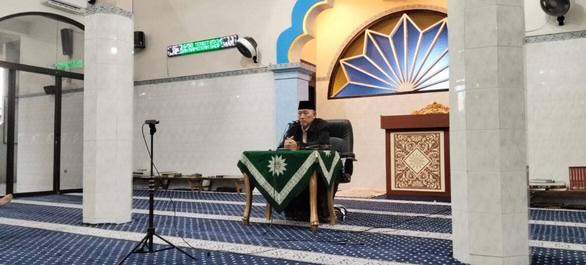 SabdaNews.com- Drs. H. Muhammad In’am, M.Pd.I. menjadi penceramah Kajian Jelang Berbuka Puasa pada Kamis (12/3/2026) di Masjid At Taqwa Giri Muhammadiyah Cabang Kebomas Gresik.   Wakil Ketua Pimpinan Daerah Muhammadiyah Kabupaten Gresik ini membawakan Kajian berjudul : berburu tiket menuju surga. Ustaz In’am menjelaskan  An Najm 32 yang artinya ” … Maka, janganlah kamu menganggap dirimu suci. Dia lebih mengetahui siapa yang bertakwa.”  “Surah An-Najm 32 mengingatkan kita agar tidak merasa dirinya suci, tak ada dosa ” Ujarnya.