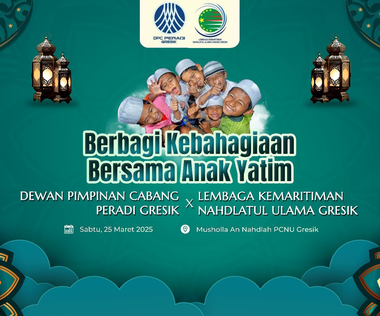 GRESIK,SabdaNews.com- Sore itu waktu menunjukkan pukul 15.30 WIB, Sabtu (22/3/2025). Kendati hujan terus mengguyur disertai angin kencang, namun tak menyurutkan anggota PERADI DPC Gresik berkolaborasi dengan Lembaga Kemaritiman Nahdlatul Ulama (LKNU) Gresik tetap semangat dalam menggelar acara berbagi kebahagiaan bersama anak yatim di Aula Serbaguna Gedung PCNU Gresik, Kabupaten Gresik, Jawa Timur.