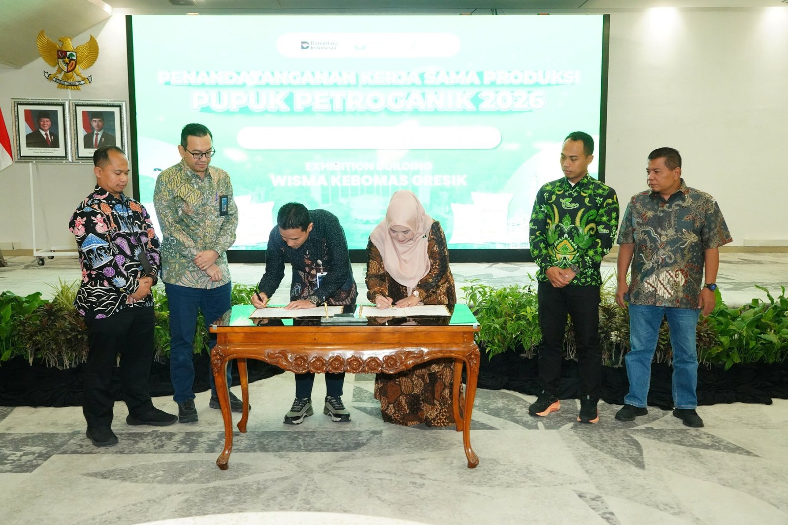 GRESIK,SabdaNews.com- Petrokimia Gresik, perusahaan Solusi Agroindustri anggota holding Pupuk Indonesia menggandeng 78 mitra produksi Petroganik untuk mendukung kelancaran penyaluran pupuk organik bersubsidi tahun 2026. Penandatangan Kerja Sama Produksi Pupuk Petroganik dilaksanakan oleh Direktur Keuangan dan Umum Petrokimia Gresik, Adityo Wibowo bersama Mitra Petroganik, beberapa waktu lalu di Gresik, Jawa Timur. Adit, sapaan akrab Adityo Wibowo, menyampaikan bahwa tahun 2026 ini Pemerintah mengalokasikan pupuk organik bersubsidi untuk sektor pertanian dan perikanan. Adapun pemenuhan kebutuhan pupuk organik bersubsidi kedua sektor tersebut sebagian besar menjadi tanggung jawab Petrokimia Gresik.