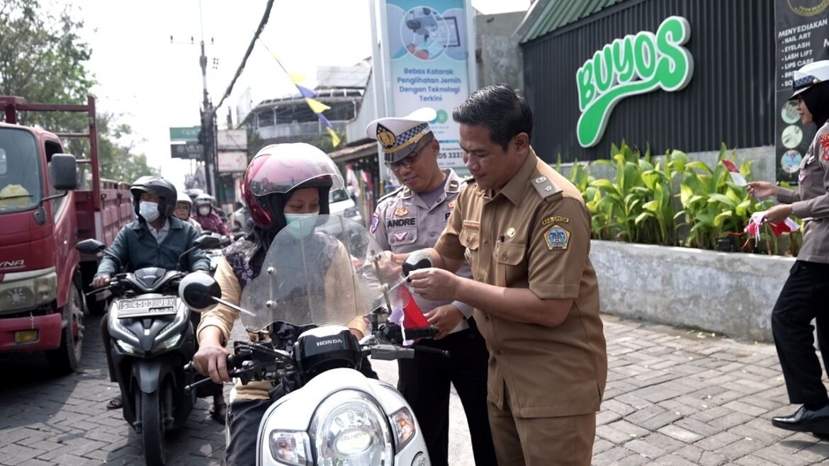 Dalam aksi simpatik tersebut, petugas membagikan bendera kecil dan pin Merah Putih kepada para pengendara, pejalan kaki, hingga anak-anak yang berada di sekitar lokasi. Langkah ini menjadi bagian dari edukasi kebangsaan serta penanaman nilai cinta Tanah Air sejak usia dini.