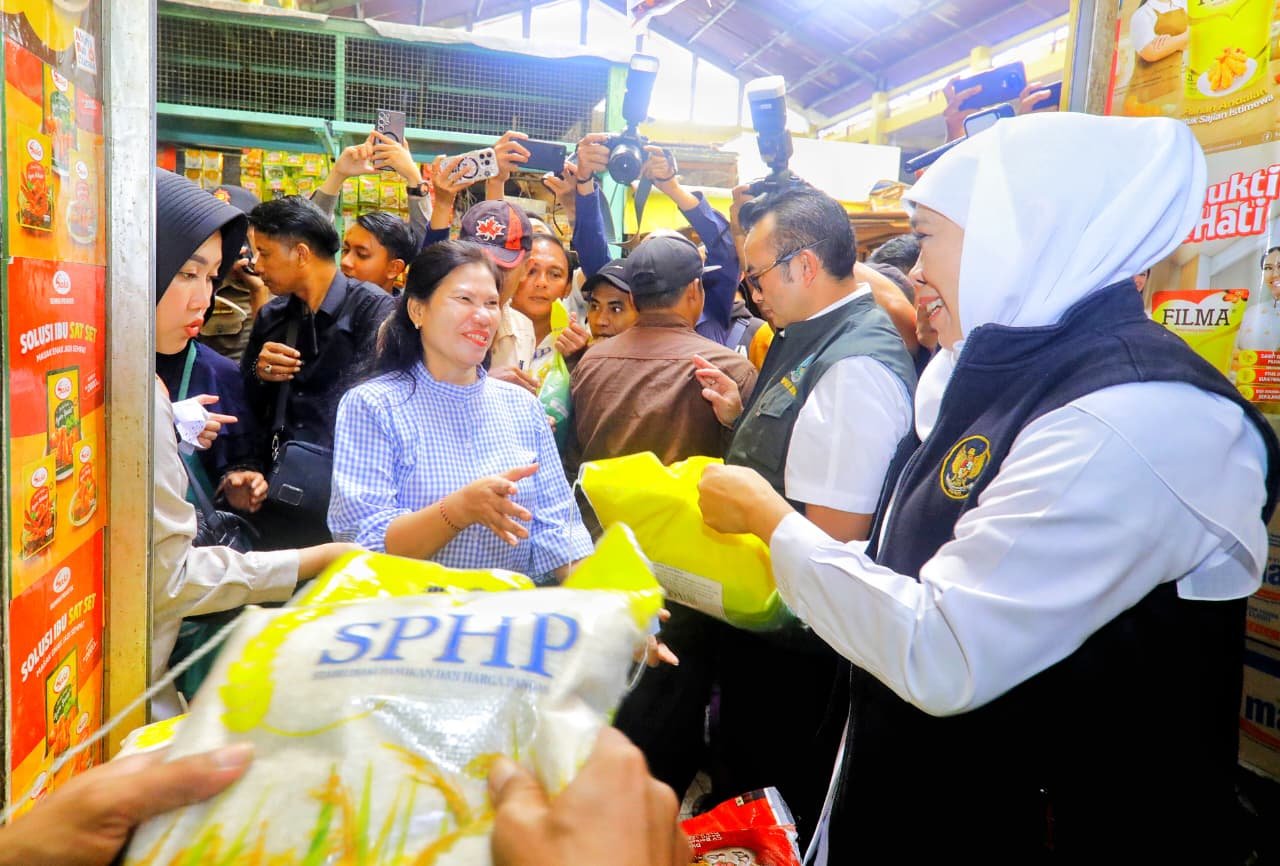 “Beras menjadi konsumsi tertinggi di masing-masing keluarga, maka saya ingin cek supaya distribusi SPHP itu bisa terjangkau oleh masyarakat. Alhamdulillah, SPHP di Pasar Soponyono Surabaya ini relatif stabil, tidak di atas HET,” kata Khofifah.