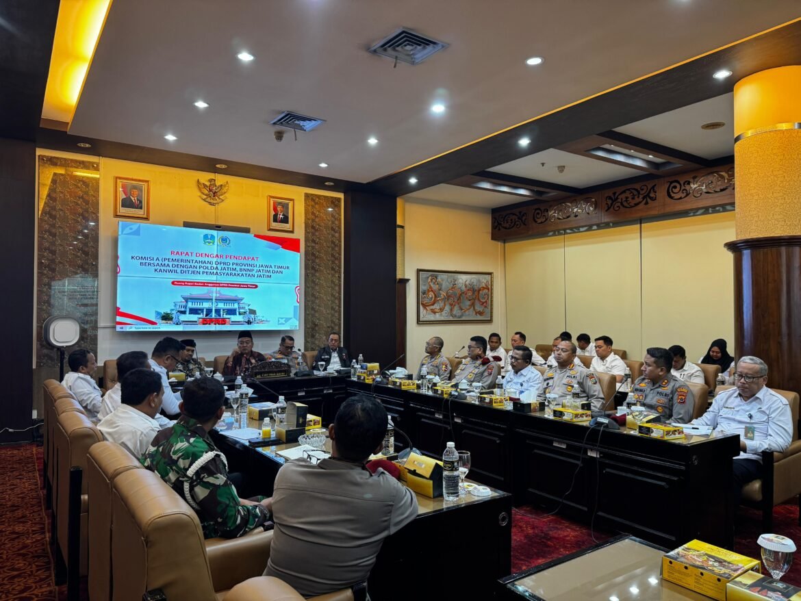SabdaNews.com  – Komisi A DPRD Jawa Timur menggelar rapat dengar pendapat (RDP) dengan Badan Narkotika Nasional (BNN) Provinsi Jawa Timur, Direktorat Narkoba Polda Jatim, dan perwakilan Lembaga Pemasyarakatan (Lapas) di Gedung DPRD Jawa Timur, Senin (21/7/2025).