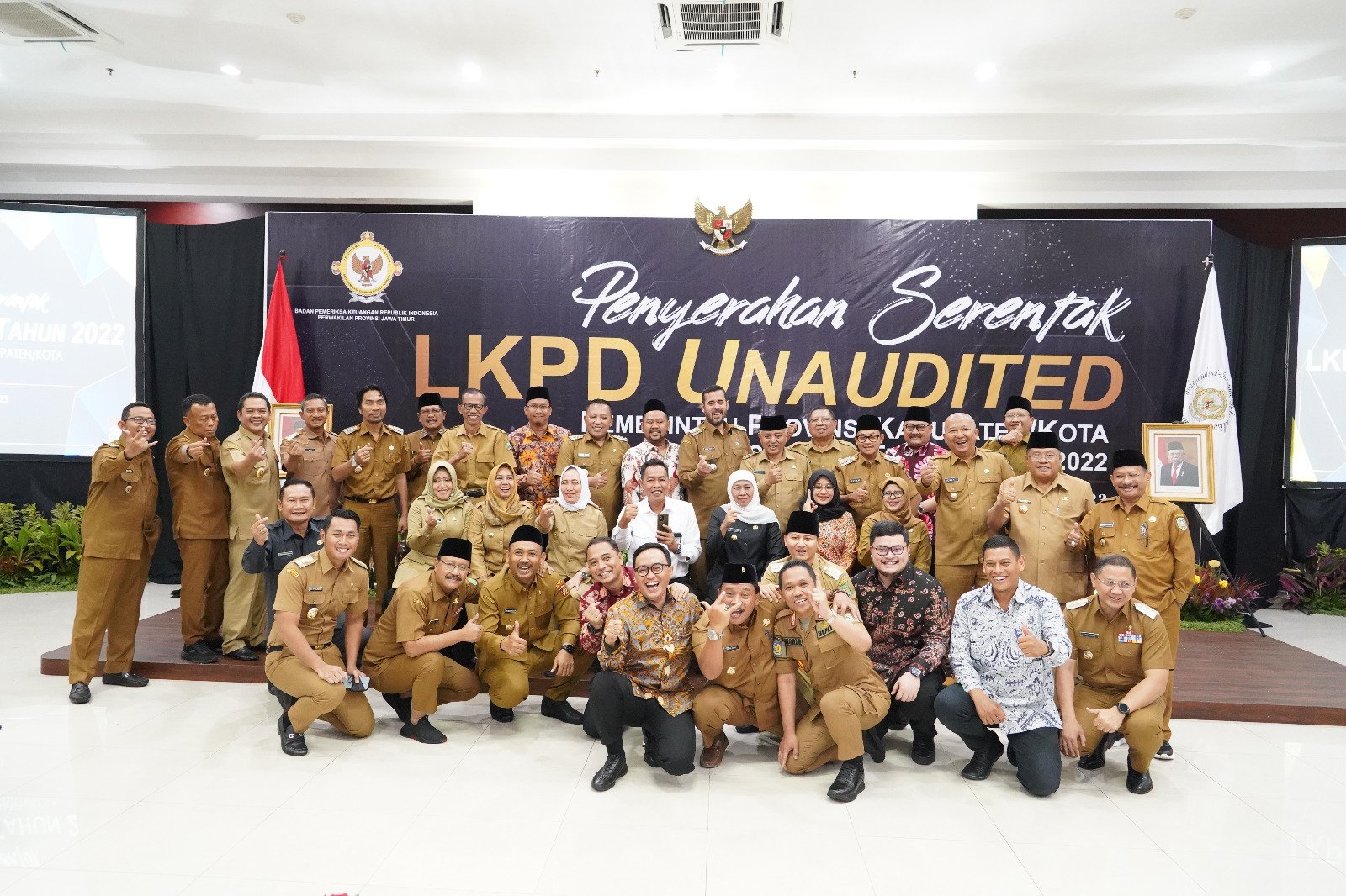 SabdaNews.com – Badan Pemeriksa Keuangan (BPK) Perwakilan Provinsi Jawa Timur segera menyelesaikan LKPD Unaudited Pemerintah Provinsi/Kabupaten/Kota se Jawa Timur Tahun 2022, Selasa (27/3/2022). Penyerahan dihadiri 38 kabupaten/kota se Jatim, dan Pemprov Jawa Timur.