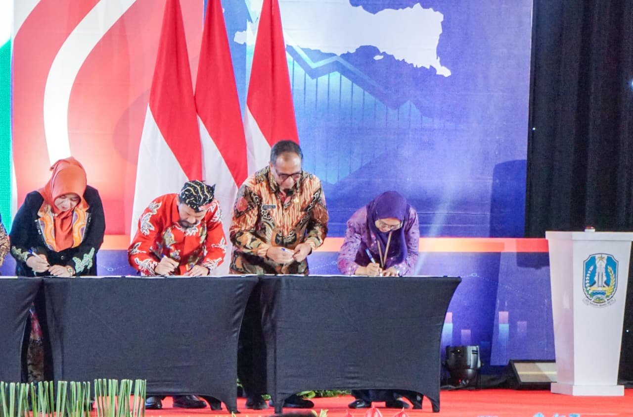 MALANG,SabdaNews.com — Pemerintah Kabupaten Gresik menghadiri kegiatan penandatanganan Nota Kesepakatan terkait penyediaan, pemanfaatan, dan pengembangan data serta informasi statistik dalam rangka pembangunan daerah. Agenda berlangsung di Ballroom Mirama, Hotel Grand Mercure, Kota Malang. Kamis (20/11/2025) Dalam kegiatan ini, dilaksanakan tiga agenda utama, yaitu penandatanganan Nota Kesepakatan antara Pemerintah Provinsi Jawa Timur dan BPS RI, penandatanganan Nota Kesepakatan antara 37 Pemerintah Kabupaten/Kota se-Jawa Timur dengan BPS Kabupaten/Kota, serta peluncuran Aplikasi Singasari, platform integrasi data yang dikembangkan BPS RI bersama Pemerintah Provinsi Jawa Timur.