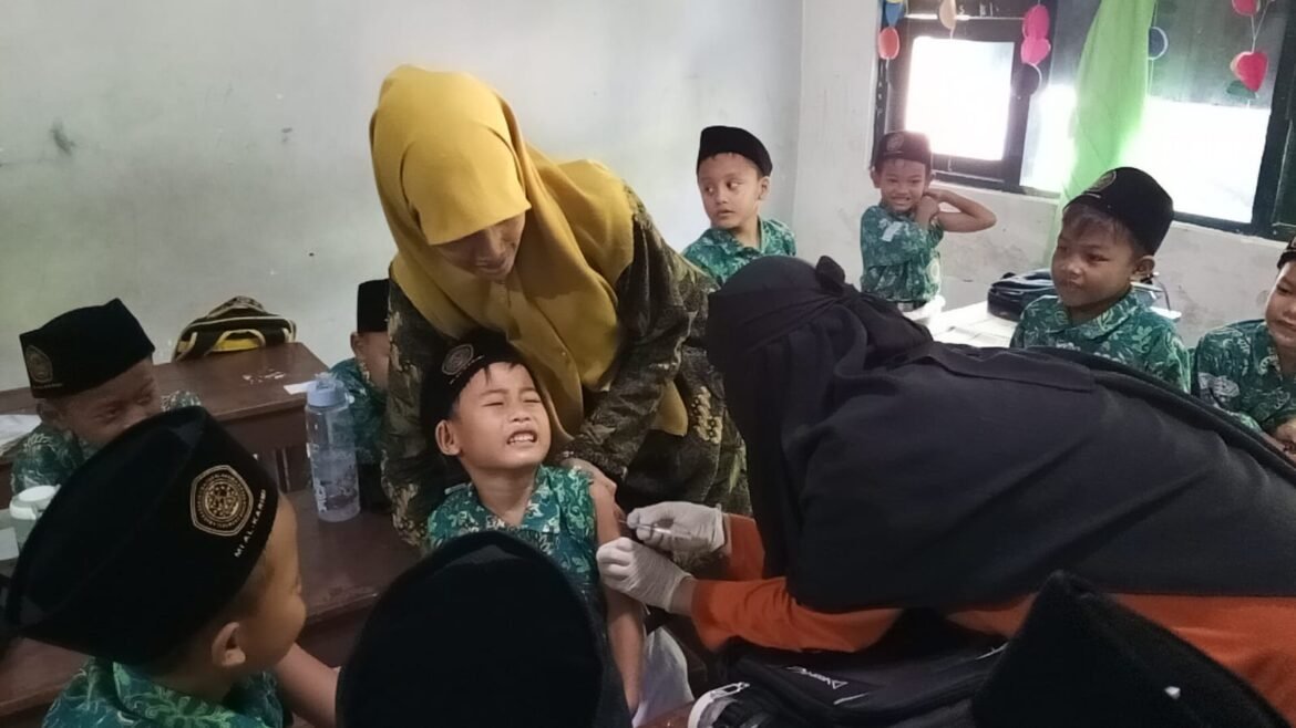Bulan Imunisasi Anak Sekolah (Bias) Di MI Alkarimi Gresik Berjalan Lancar Di Warnai Dengan Kelucuan