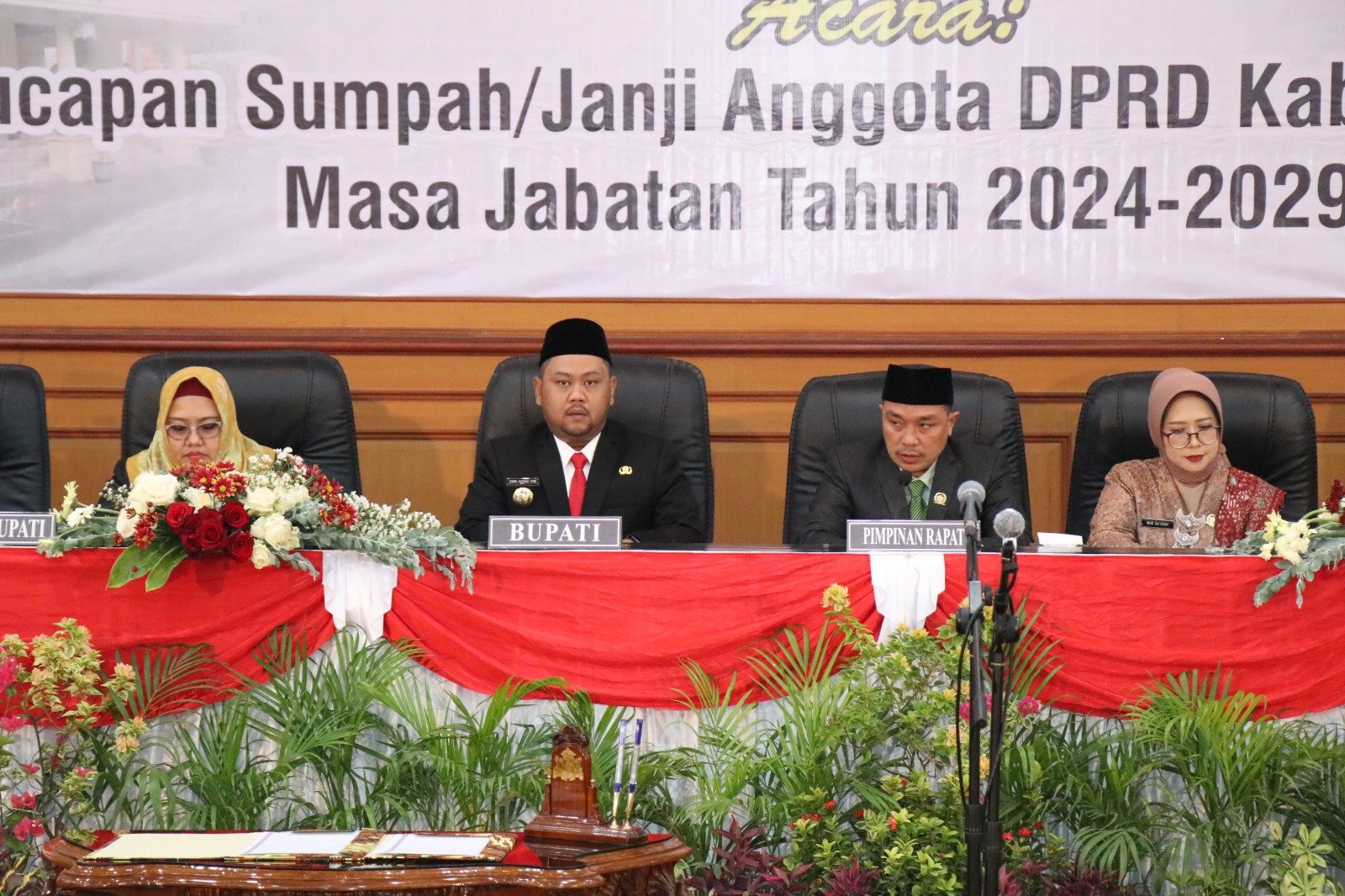Dikatakan, rapat paripurna DPRD dengan agenda khusus pengucapan sumpah atau janji anggota DPRD kabupaten/kota hasil Pemilu Tahun 2024, merupakan puncak dari seluruh rangkaian proses pelaksanaan pemilihan umum anggota DPRD. “Secara filosofis berkedudukan sebagai sarana demokrasi yang dimaksudkan untuk melaksanakan kedaulatan rakyat dalam tatanan pemerintahan Negara Kesatuan Republik Indonesia (NKRI),” ujarnya.