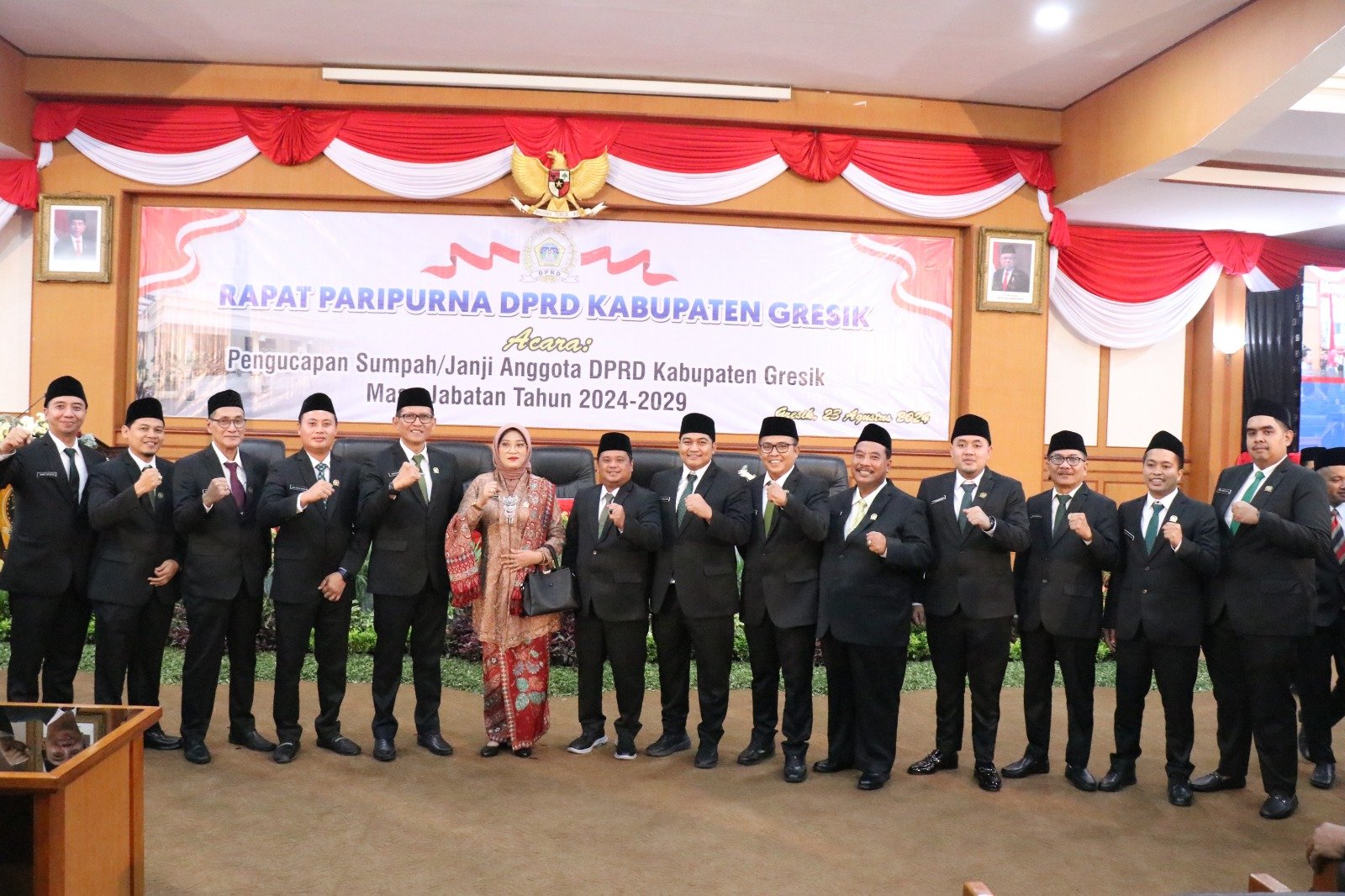 Ketua DPRD Gresik periode 2019-2024 H. Abdul Qodir dari Partai Kebangkitan Bangsa (PKB) menyerahkan palu sidang kepada Abdullah Hamdi, sebagai pimpinan sementara DPRD Kabupaten Gresik periode 2024-2029, dari Partai PKB. Menteri Dalam Negeri (Mendagri) dalam sambutan yang dibacakan Bupati Gresik H. Fandi Akhmad Yani menyampaikan, ucapan selamat kepada 50 anggota DPRD Kabupaten Gresik yang baru dilantik.
