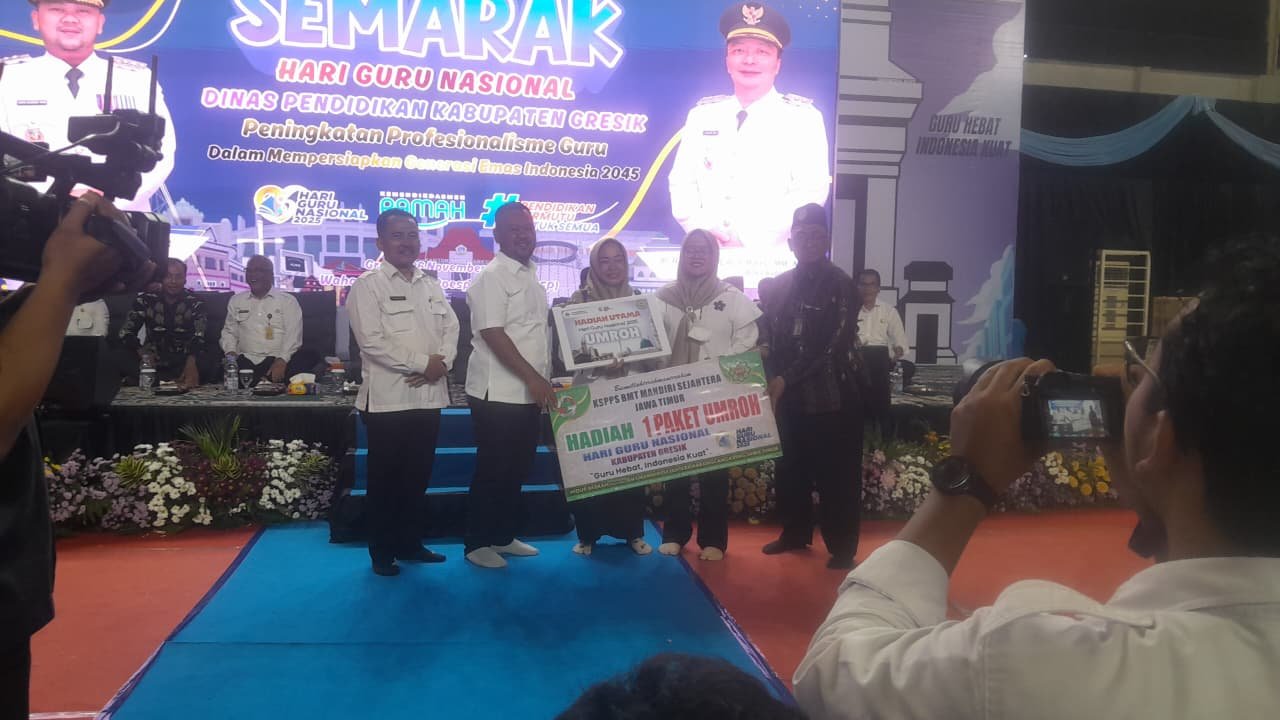 GRESIK. SabdaNews.com. Semarak Hari Guru Nasiobal ( HGN ) 2025 yang digelar oleh Dinas Pendidikan Kabupaten Gresik, Rabu, (26/11/2025) di Wahana Ekspresi Poesponegoro (WEP) Gresik Kegiatan yang bergengsi ini memberikan kebermanfaatan para pendidik/Guru mulai dari tingkat PAUD, TK, SD/Mi, SMP/MTd dan 1000 anak tahfid se- Kab.Gresik. Dalam acara ini Pemerintah Kabupaten Gresik melalui Dinas Pendidikan memberikan beberapa penghargaan kepada guru yang berprestasi baik di tingkat Kabupaten, Propinsi maupun tingkat Nasional diberikan secara langsung oleh Kepala Dinas Pendidikan maupun oleh Bupati Gresik.