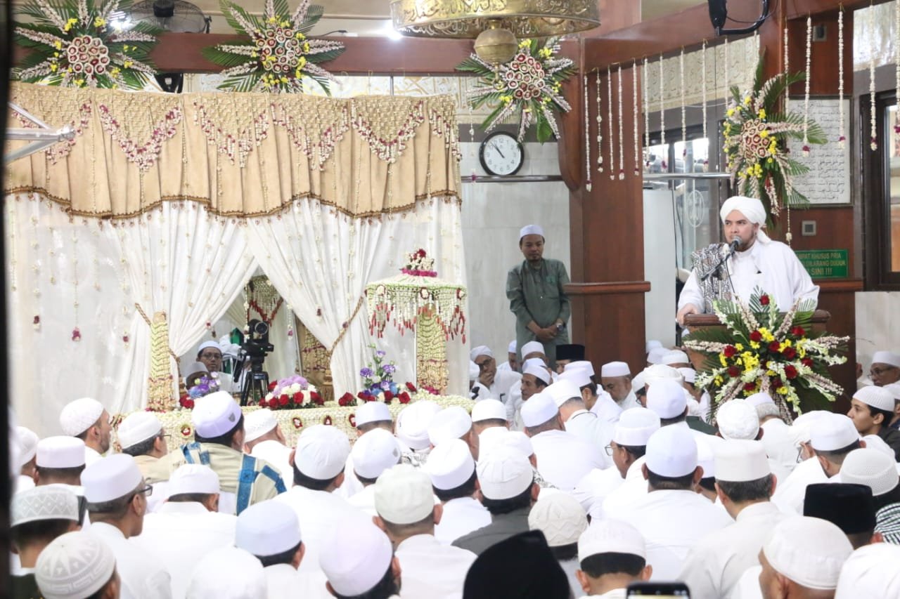 GRESIK,SabdaNews.com- Bupati Gresik Fandi Akhmad Yani bersama ribuan jamaah memadati haul Al Habib Abu Bakar Bin Muhammad Assegaf yang ke-68. Masjid Jami’ dan area sekitar Alun-Alun Gresik yang menjadi pusat acara sejak Selasa (05/07/2023) sore.