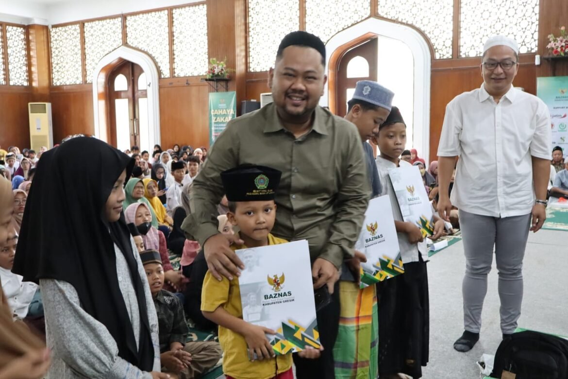 Pada kesempatan ini, sebanyak 1.000 anak yatim dan dhuafa dari seluruh kecamatan di Kabupaten Gresik menerima berbagai bantuan, diantaranya:  1. Paket sembako dari Bupati Gresik  2. Perlengkapan sekolah dari Baznas Jawa Timur