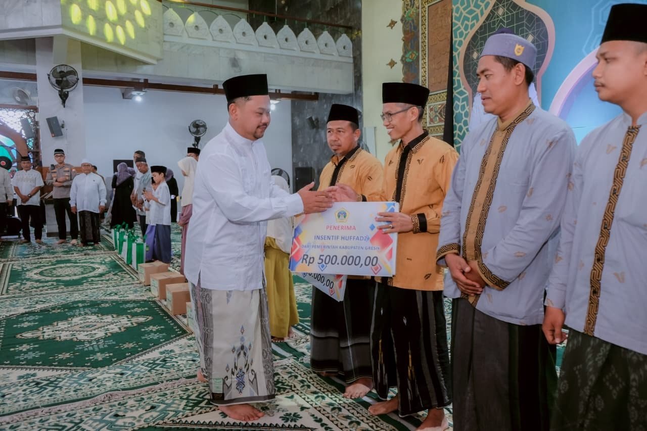 Penyerahan bingkisan diserahkan secara simbolis oleh Bupati Gresik Fandi Akhmad Yani, didampingi Kepala Bidang (Kabid) Pengelolaan SMP Syifaul Qulub, Ketua MKKS SMP Negeri Beri Avita Prasetya serta Ketua Baznas Muhammad Mujib. Kegiatan digelar di Masjid Al Inabah Kantor Pemerintah Kabupaten (Pemkab) Gresik, Senin (9/3/2026).