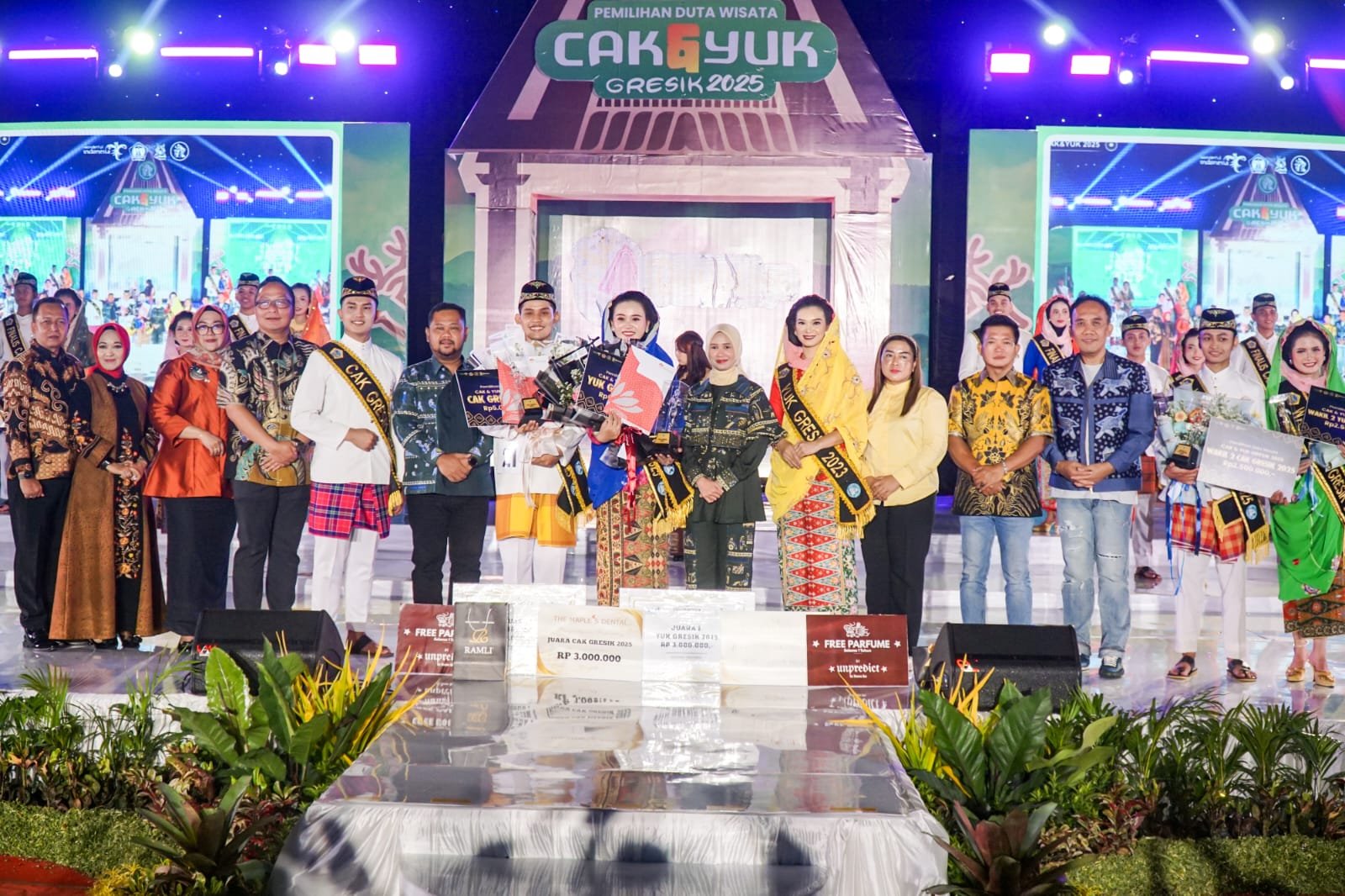 Berdasarkan hasil penilaian dewan juri, pasangan Cak Arsya Fahriza dan Yuk Nadia Tiara Farradilla ditetapkan sebagai Juara Umum Duta Cak Yuk Gresik 2025. Arsya Fahriza merupakan perwakilan Kecamatan Manyar dan tercatat sebagai Duta Hukum Universitas Trunojoyo Madura 2024, sementara Nadia Tiara Farradilla merupakan siswi SMAN 1 Cerme serta anggota Paskibraka Kabupaten Gresik 2024.