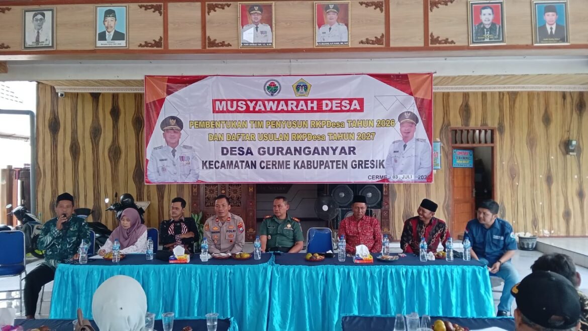 GRESIK,SabdaNews.com – Untuk membahas Rancangan Rencana Kerja Pemerintah Desa (RKPDesa) dan APBDesa Tahun 2026, serta sebagai bentuk evaluasi Anggaran Pendapatan dan Belanja Desa (APBDesa) tahun 2025, Pemerintah Desa (Pemdes) Guranganyar, Kecamatan Cerme, Kabupaten Gresik, menggelar Musyawarah Desa (Musdes) pada Kamis, (3/07/2025).