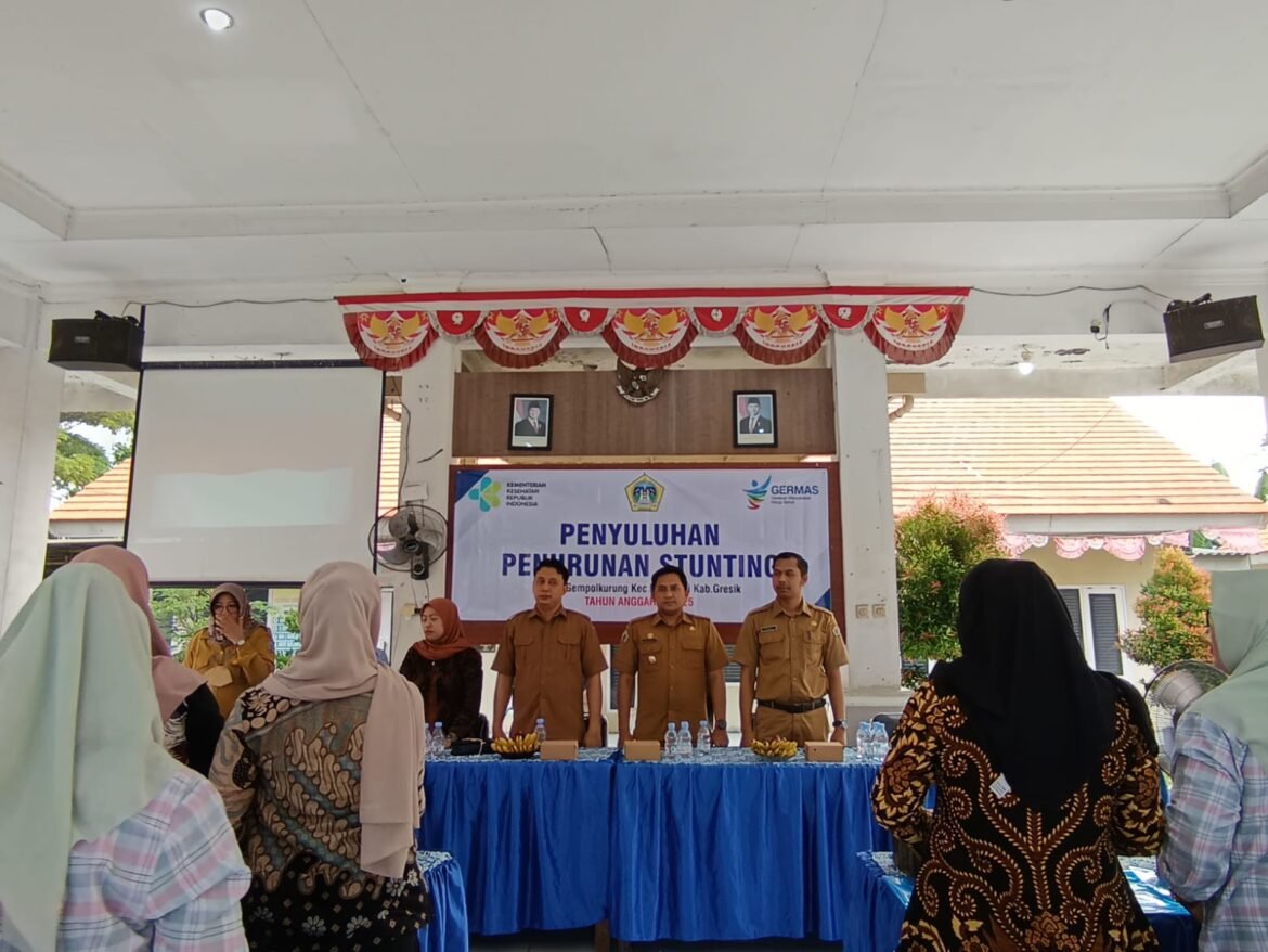 GRESIK, SabdaNews.com –Demi terwujudkan generasi masa depan yang sehat dan cerdas, serta menurunkan angka anak dengan stunting, khususnya di wilayah Gempolkurung, Menganti, Pemerintah Desa( Pemdes) Gempolkurung, Kecamatan Menganti, Kabupaten Gresik, menggelar kegiatan penyuluhan penurunan angka stunting.