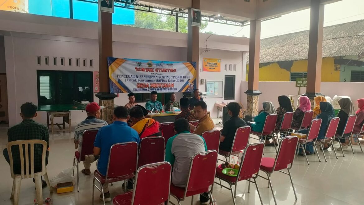 GRESIK, SabdaNews.com- Pemerintah desa Mriyunan Sidayu melaksanakan rembuk stunting dalam rangka pencegahan dan penurunan stunting tingkat desa. Rembuk stunting ini juga bertujuan untuk penyusunan RKPDes tahun 2026. Bertempat di balai desa Mriyunan pada Jumat, 20 Juni 2025 , PJ Kepala desa Mriyunan M Taufiq memimpin rembuk stunting tersebut.