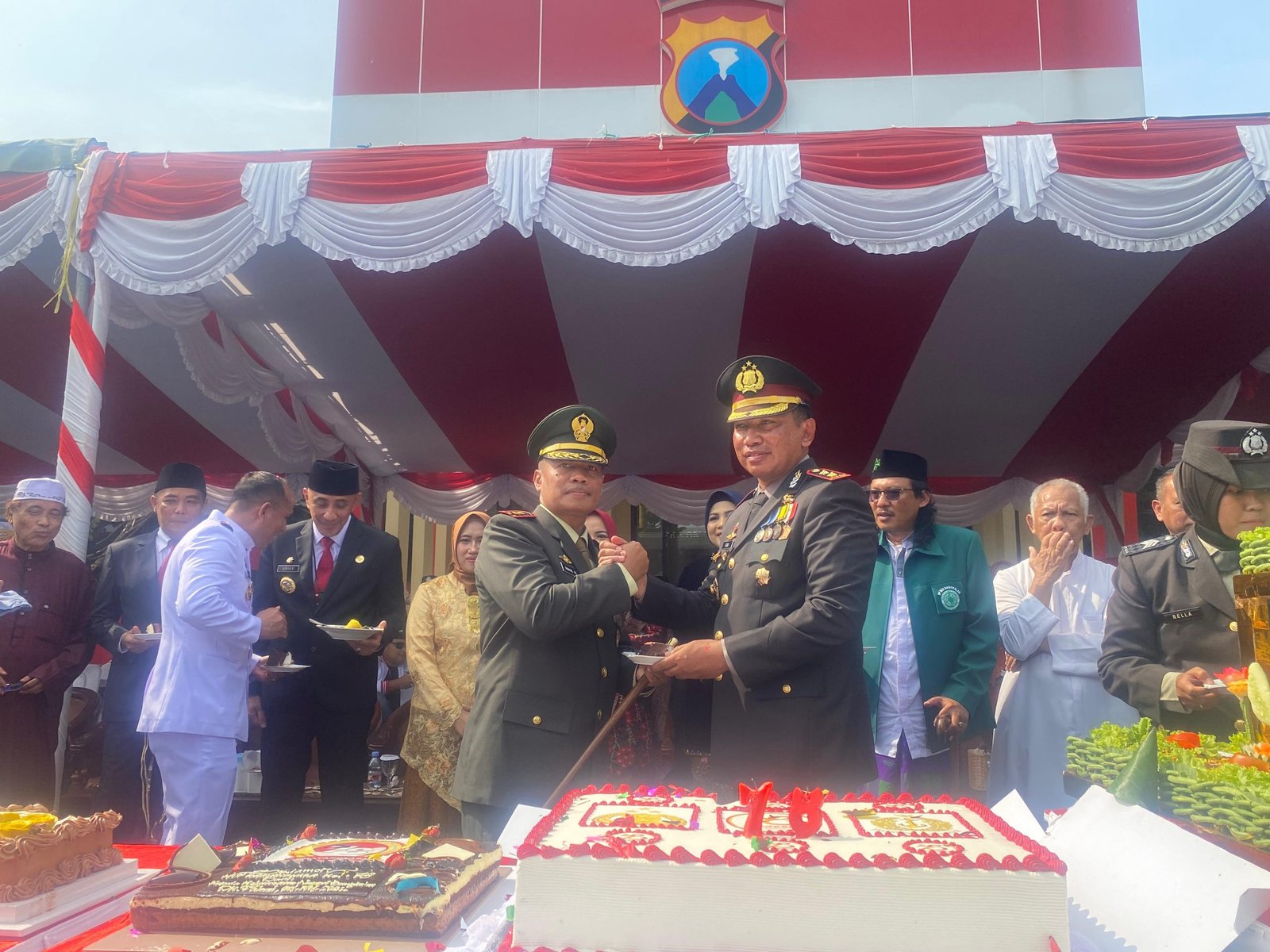 BANGKALAN, SabdaNews.com- Dandim 0829/Bangkalan Letkol Inf. Nanang Fahrur Rozi.S.Pd. berserta anggota Kodim 0829/Bangkalan Berikan ucapan selamat HUT Bhayangkara ke-78 kepada Kapolres Bangkalan bertempat di lapangan Wicaksana Laghawa Mapolres Bangkalan Jl. Soekarno Hatta No.45 Kel. Mlajah Kec. Bangkalan Kab. Bangkalan, Senin (01/07/2024)