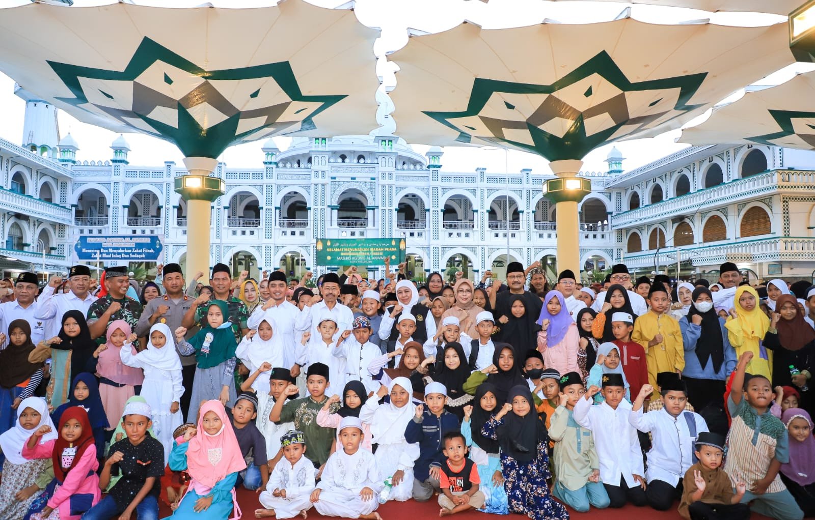 Di Bawah ‘Payung Madinah’ Kota Pasuruan, Gubernur Khofifah Berikan 500 Santunan Anak Yatim dan 50 Zakat Produktif