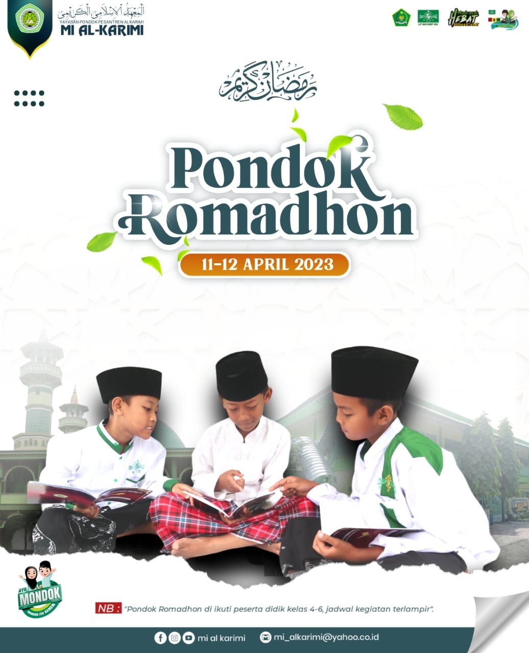 Tujuan Pondok Ramadhan di Lembaga MI Alkarimi Tebuwung Dukun adalah : menanamkan pemahaman untuk memperbanyak ibadah di bulan Ramadhan sehingga bisa meningkatkan Iman dan Taqwa serta mendekatkan diri kepada Allah Swt. Di samping kegiatan yang lainya dengan tujuan memberikan pemahaman, edukasi, fun game dan banyak yang lainya. Dengan tema” Ramadhan meningkatkan keimanan, ketaqwaan dan menguatkan karakter dalam membangun kebersamaan menjadi madrasah hebat bermartabat mandiri berprestasi” (11/4/2023)