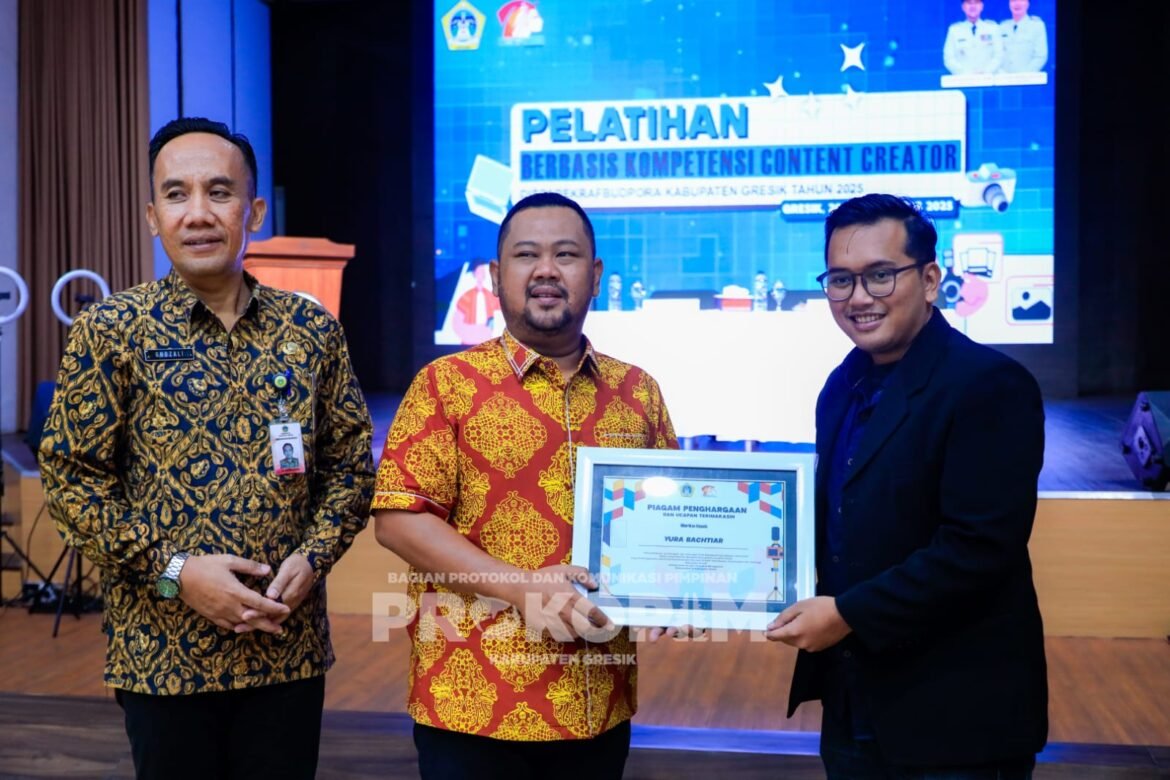 GRESIK,SabdaNews,com – Bupati Gresik Fandi Akhmad Yani membuka Pelatihan dan Sertifikasi BNSP Sub Sektor Desain Komunikasi Visual (DKV) “Konten Kreator”. Pelatihan yang diselenggarakan Dinas Pariwisata, Ekonomi Kreatif, Kebudayaan, Kepemudaan, dan Olahraga (Disparekrafbudpora) ini digelar di Gedung Nasional Indonesia (GNI), Kamis (21/8/2025).