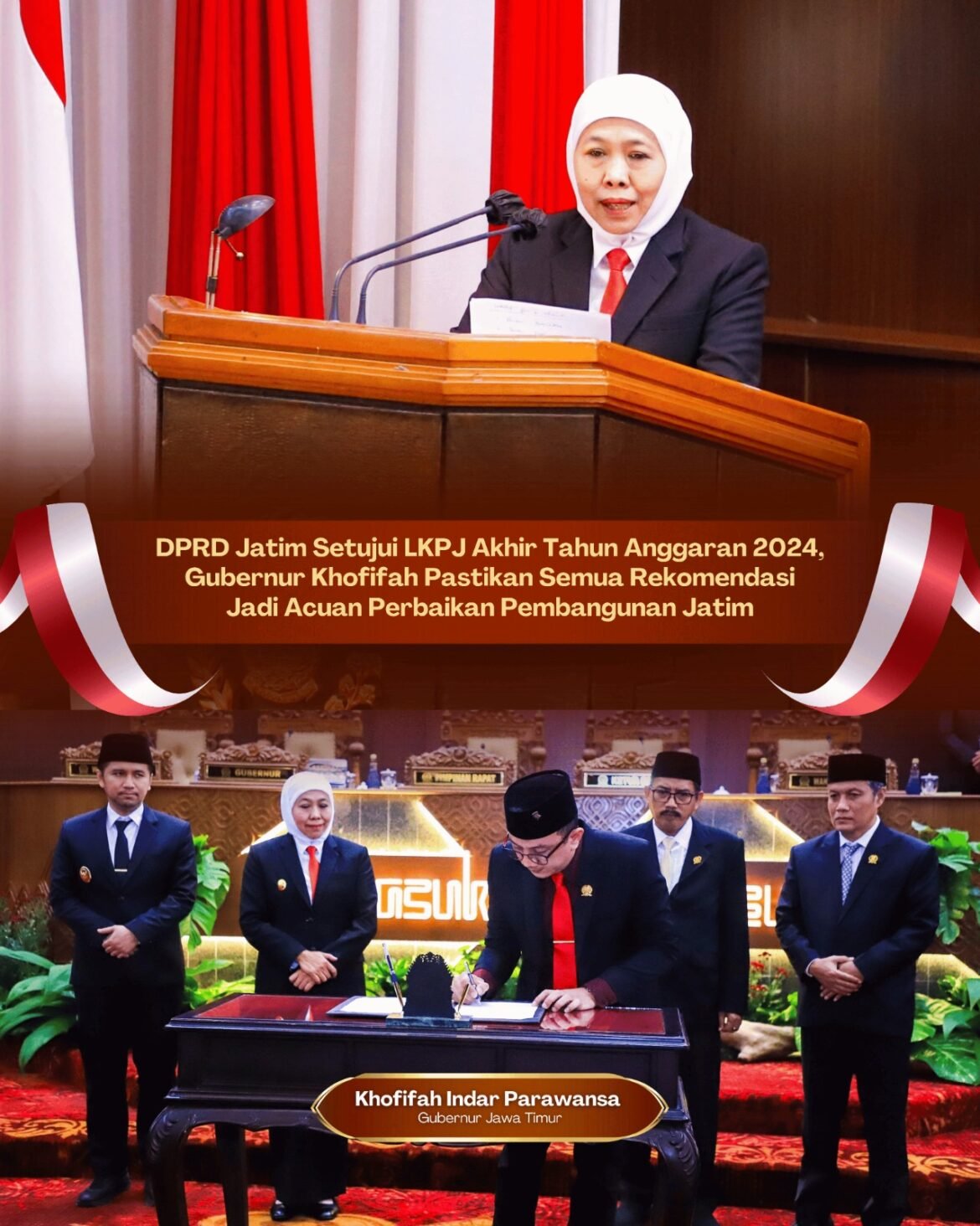 Rekomendasi tersebut diserahkan setelah sebelumnya bersama DPRD Jatim mendengar pendapat akhir dari fraksi-fraksi terhadap LKPJ yang telah disampaikan oleh Gubernur Khofifah pada 21 Maret 2025 lalu.