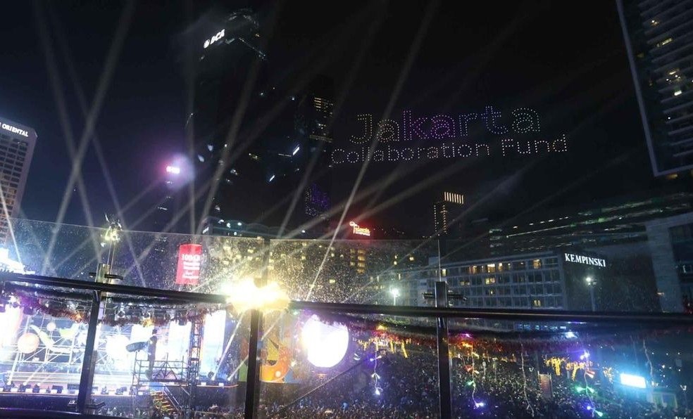 Pertunjukan ini menjadi salah satu rangkaian acara yang disiapkan Pemerintah Provinsi DKI Jakarta, selain panggung musik dan pertunjukan tata cahaya. Pemprov dan warga di Jakarta merayakan pergantian tahun baru dengan cara yang berbeda. Momen perayaan malam tahun baru di Jakarta kali ini menaruh penghormatan kepada para korban yang masih menghadapi bencana di Sumatera.  Pertunjukan drone menjadi salah satu rangkaian acara dalam perayaan pergantian malam tahun di Bundaran Hotel Indonesia (HI), Menteng, Jakarta Pusat. Sekitar pukul 18.40 WIB, puluhan drone mulai diterbangkan dan menghiasi langit Jakarta.