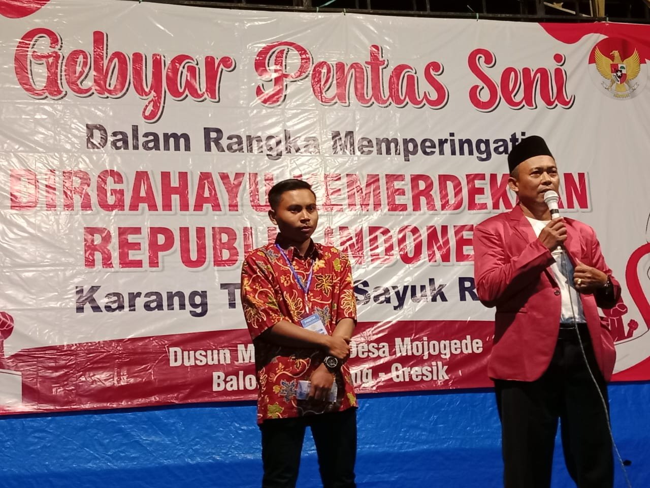 GRESIK, SabdaNews.com- Pemerintah Desa (Pemdes) Mojogede melalui Karang Taruna (Kartar) Sayuk Rukun Dusun Mojolebak mengelar Pentas Seni (Pensi), kegiatan tersebut sebagai bentuk memberikan penghargaan kepada para pahlawan yang telah berjuang merebut kemerdekaan Republik Indonesia (RI).
