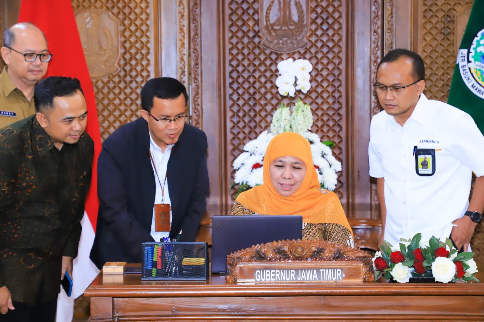 Selain itu, Gubernur Khofifah juga menyampaikan ucapan selamat kepada Kepala Kanwil Direktorat Jenderal Pajak Jawa Timur I baru yang saat ini dijabat oleh Sigit Danang Joyo menggantikan P.M. John L Hutagaol.