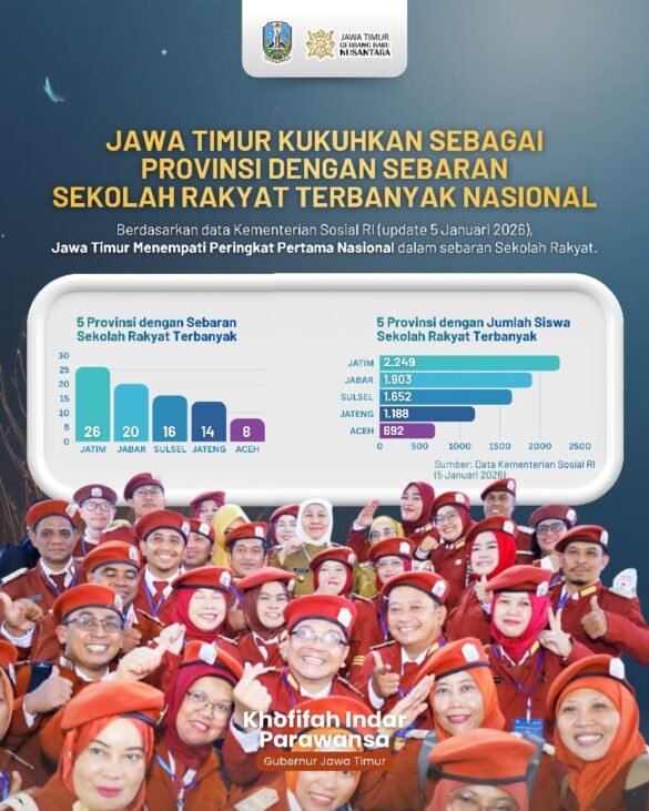 “Dari 26 SR di Jawa Timur tersebut terdapat 2.450 siswa yang sudah menuntut ilmu di Sekolah Rakyat. Terima kasih kepada Menteri Sosial RI dan semua pihak maupun elemen yang sudah ikut berkontribusi dalam program SR di Jatim,” jelas Khofifah.