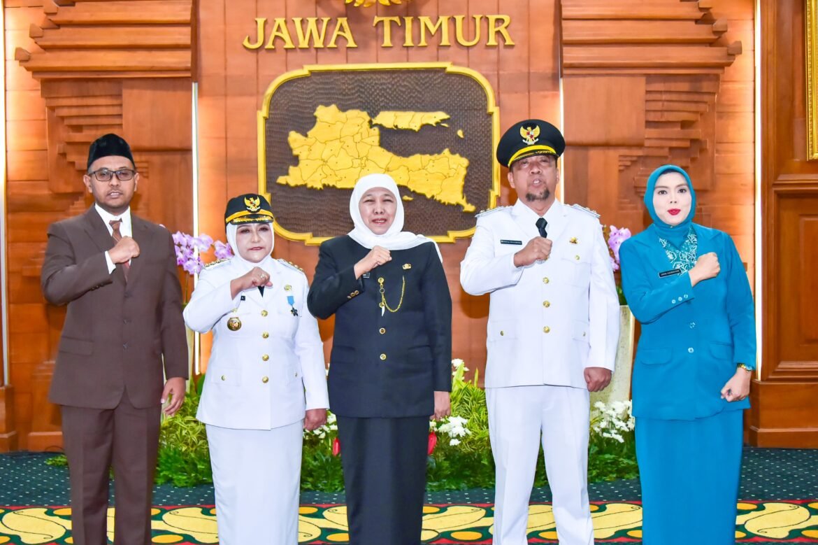 SabdaNews.com – Gubernur Jawa Timur Khofifah Indar Parawansa melantik Nanik Endang Rusminiarti dan Suyatni Priasmoro sebagai Bupati dan Wakil Bupati Magetan Hasil Pilkada Serentak Tahun 2024 Masa Jabatan Tahun 2025-2030 di Gedung Negara Grahadi, Surabaya, Jumat (23/5/2025).