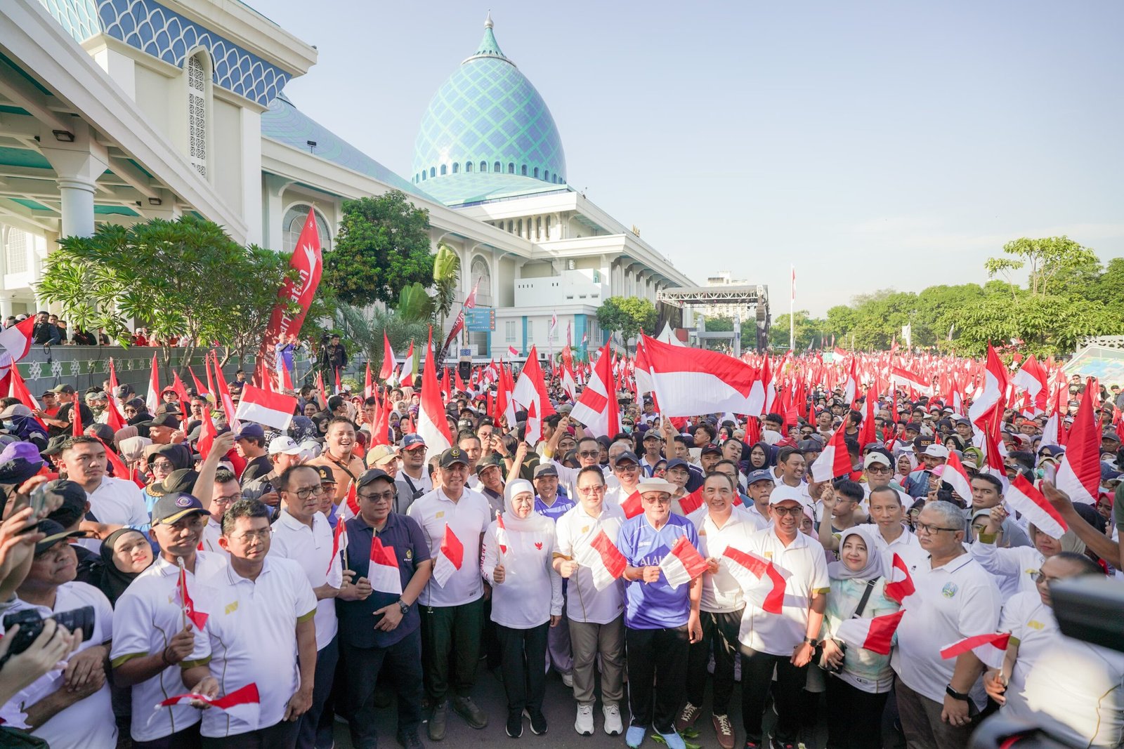 SabdaNews.com – Gubernur Provinsi Jawa Timur Khofifah Indar Parawansa jalan sehat bersama 40 ribu masyarakat dalam rangka menyambut Tahun Baru Islam 1 Muharram 1447 H/ 2025 M di halaman barat Barat Masjid Nasional Al Akbar Surabaya, Sabtu (28/6/2025) pagi.