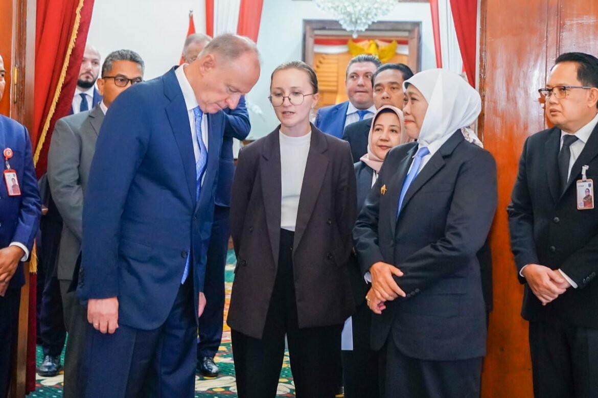 SabdaNews.com – Gubernur Jawa Timur Khofifah Indar Parawansa menerima kunjungan kehormatan Penasihat Presiden Federasi Rusia, H.E. Nikolai Patrushev, bersama delegasi tingkat tinggi Dewan Maritim Federasi Rusia di Gedung Negara Grahadi, Surabaya, Rabu (5/11/2025).