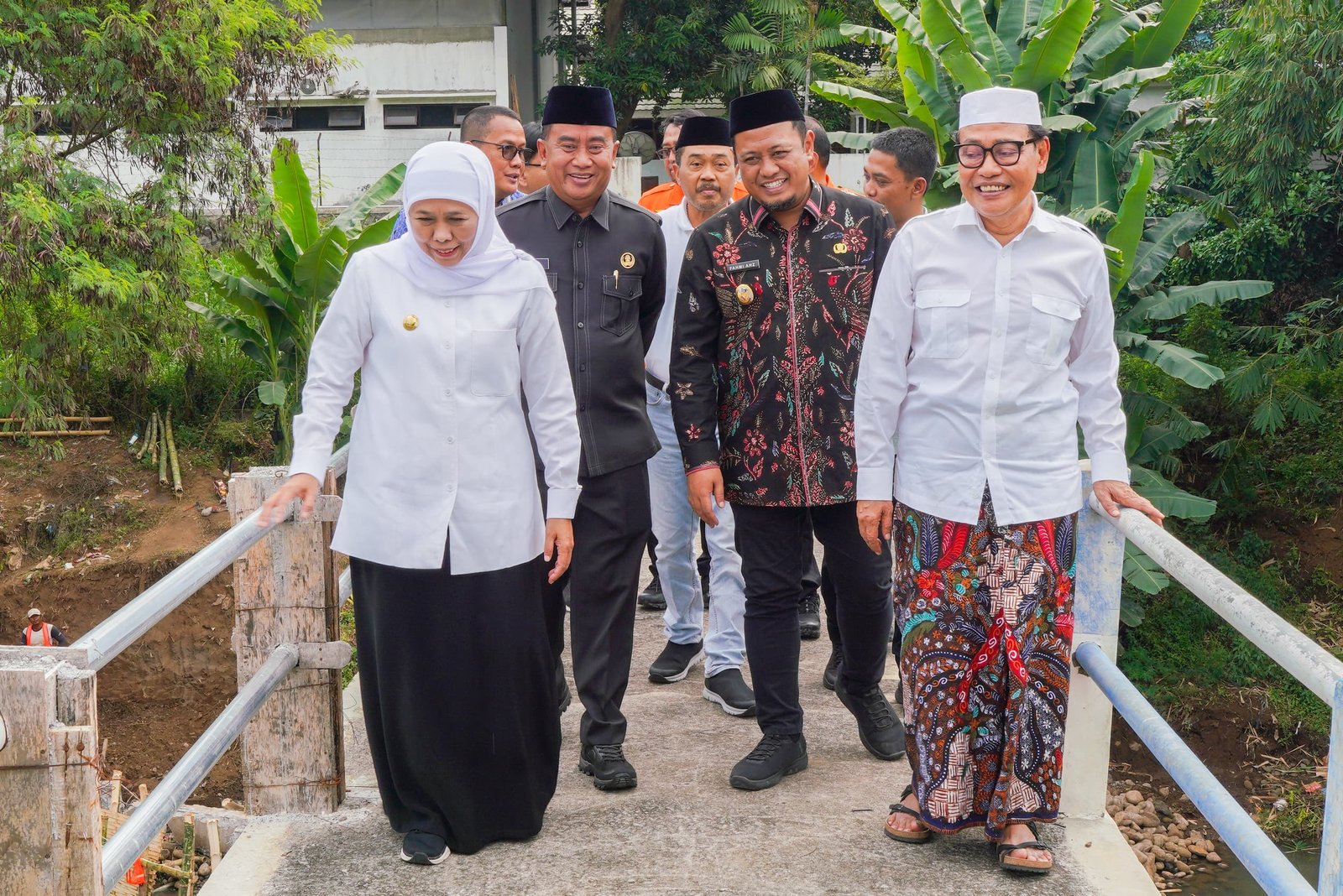 Gubernur Khofifah menyampaikan, jembatan tersebut dibangun ulang setelah pada Februari 2025 mengalami kerusakan akibat intensitas hujan lebat disertai rombolan material yang beragam menghantam jembatan. Akibatnya akses masyarakat pun terputus.