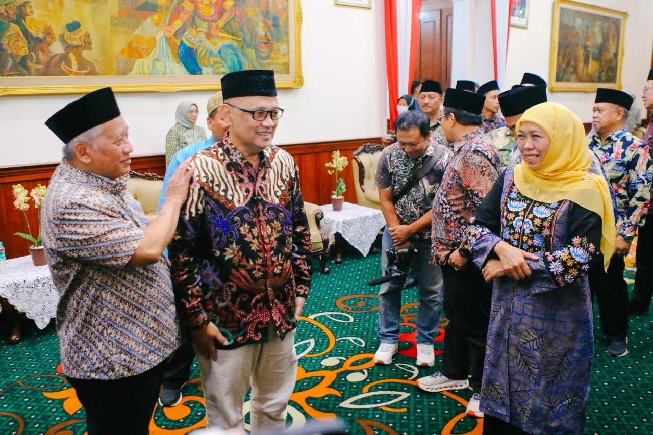 SabdaNews.com  – Gubernur Jawa Timur Khofifah Indar Parawansa menerima Kunjungan Kerja Menteri Haji dan Umroh RI KH. M. Irfan Yusuf di Gedung Negara Grahadi, Surabaya, Minggu (16/11/2025) malam.