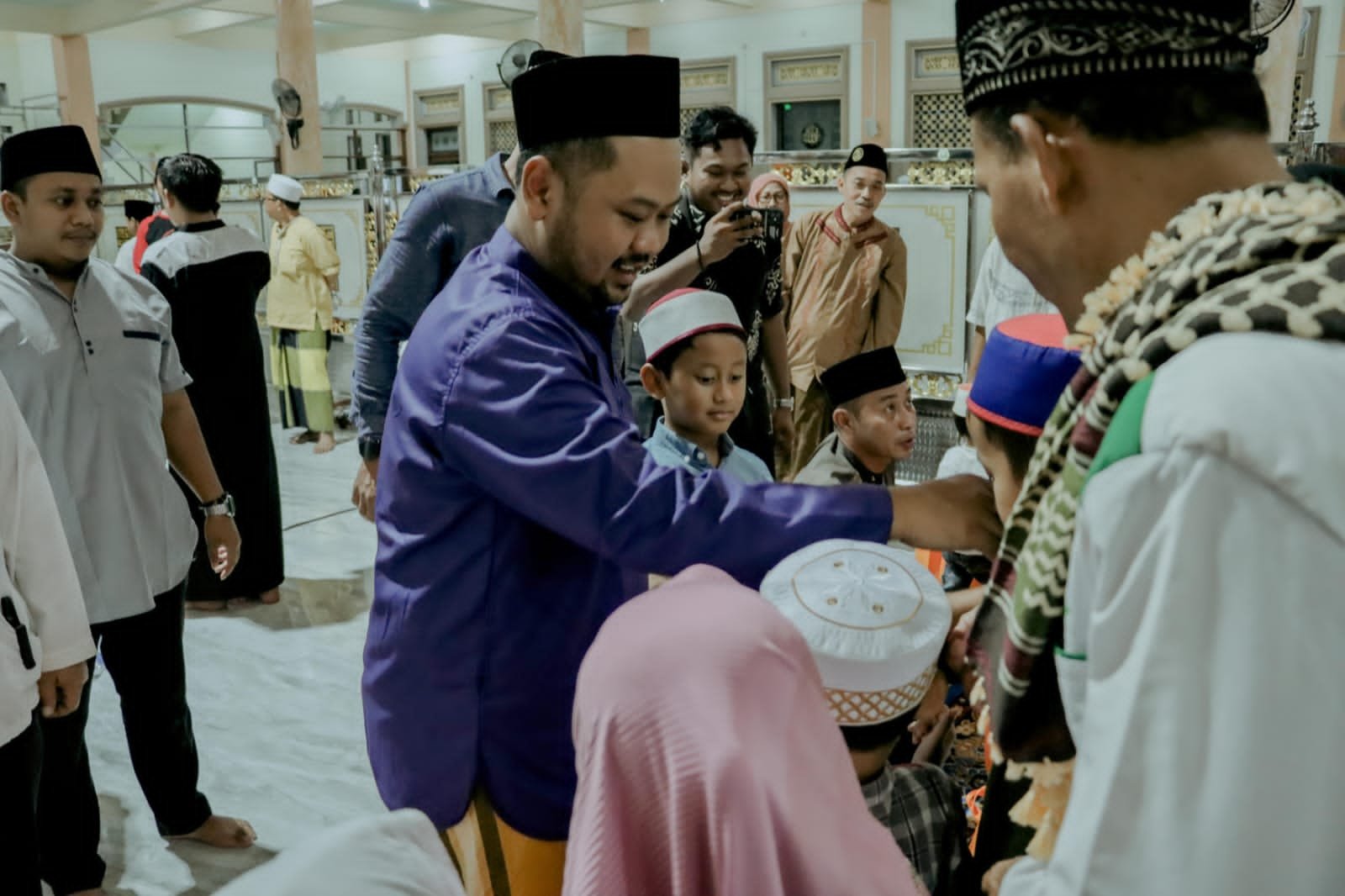 Usai tarawih, Gus Yani memberikan santunan kepada sejumlah anak yatim. Dirinya juga membagikan beras kepada para jamaah yang jumlahnya ratusan paket.  Tak jarang masyarakat yang ingin berswafoto dengan sosok bupati milenial itu.
