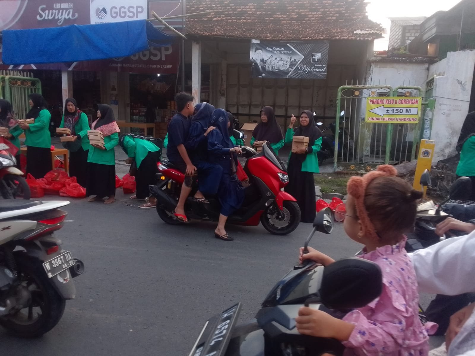 GRESIK,SabdaNews.com– Semangat kebersamaan dan kompak mewarnai pengurus dan anggota Fatayat NU Kalirejo Dukun diakhir Ramadhan ini dengan ikhtiar bersama menggelar bagi bagi takjil kepada para pengguna jalan di lintasan utara Puskesmas Dukun. Tak kurang 725 paket takjil terdistribusikan dengan cepat dan habis. Puluhan anggota Fatayat NU Kalirejo dengan santun memberikan satu persatu kepada warga masyarakat yang melintas di jalan raya tersebut.(04/04/2024)