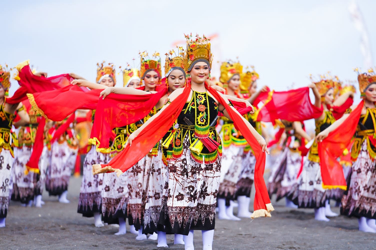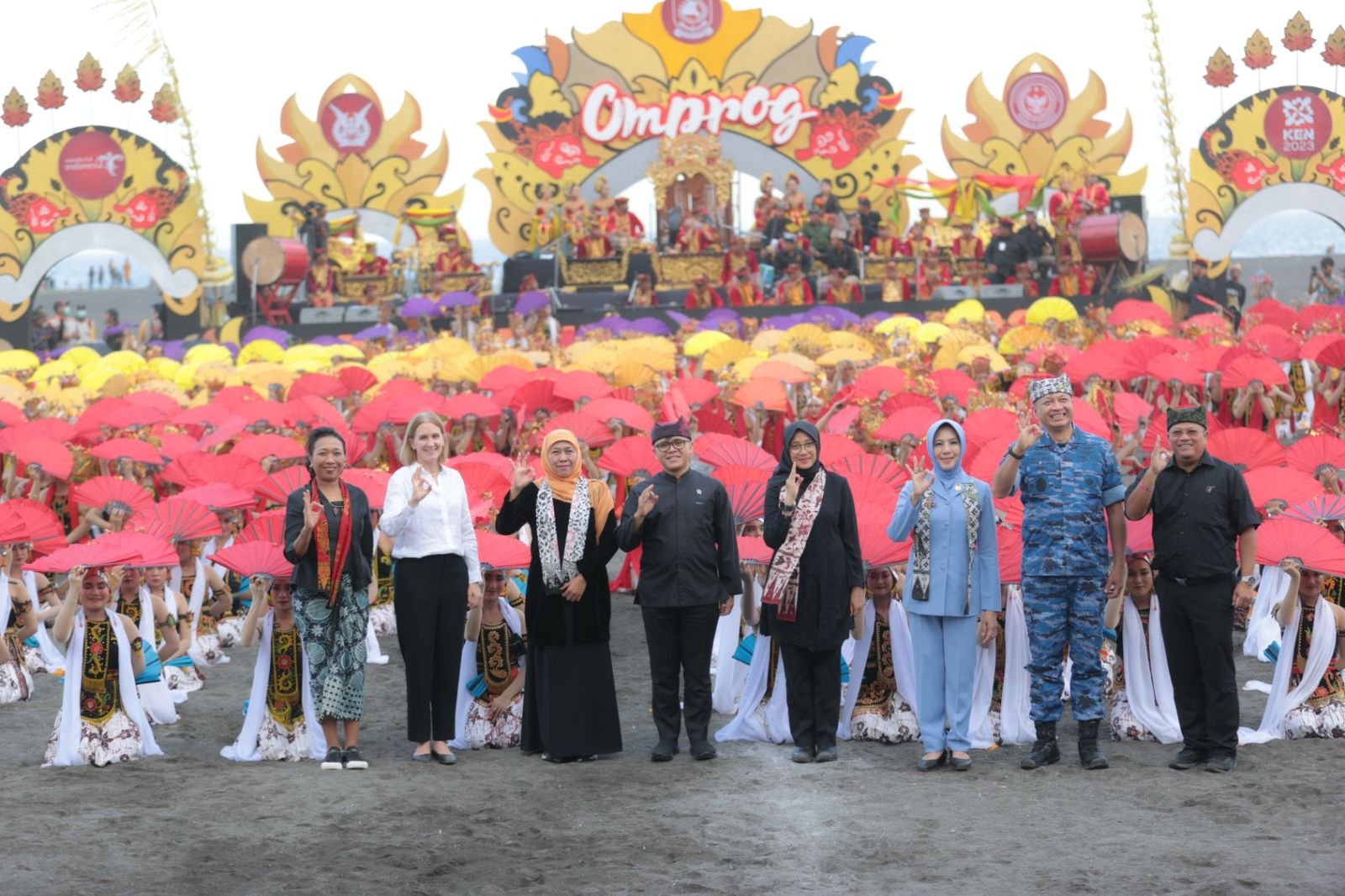 BANYUWANGI.SabdaNews.com – Gubernur Jawa Timur Khofifah Indar Parawansa menghadiri Festival Gandrung Sewu 2023 di Pantai Boom Kabupaten Banyuwangi, Sabtu (16/9). Gandrung Sewu adalah Festival Tari Gandrung kolosal yang diikuti 1.200 penari dan 150 orang tim pendukung menjadi agenda tahunan di Kabupaten Banyuwangi.