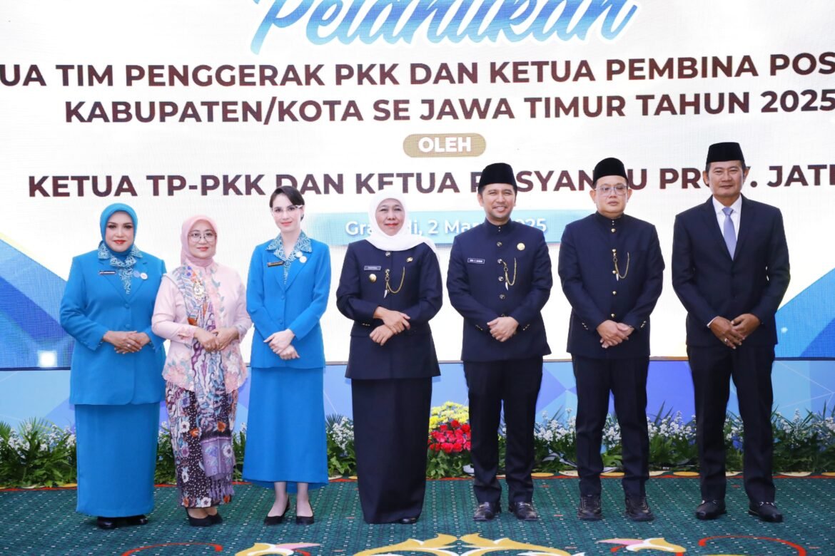 Pelantikan ini berdasarkan SK Ketua TP PKK Jatim Nomor:01/KEP/PKK PROV./II/2025 tentang Pemberhentian dan Pengangkatan Ketua TP PKK pada 36 Kab/Kota dan SK Ketua Tim Pembina Posyandu Jatim Nomor: 001/KEP/POSYANDU.Prov/II/2025 tentang Pelantikan Ketua TP Posyandu Kab/ Kota di Provinsi Jatim.