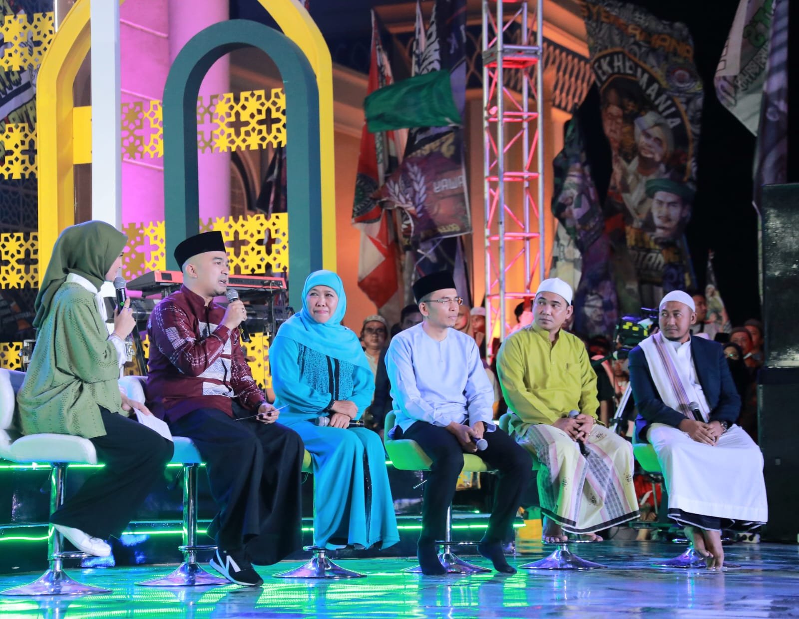 SabdaNews.com – Gubernur Jawa Timur Khofifah Indar Parawansa menyapa masyarakat Jawa Timur yang hadir dalam acara Tabligh Akbar Ramadhan 1.444 Hijriyah yang digelar oleh I News di Halaman Timur Masjid Nasional Al-Akbar Surabaya, Sabtu (1/4) malam.