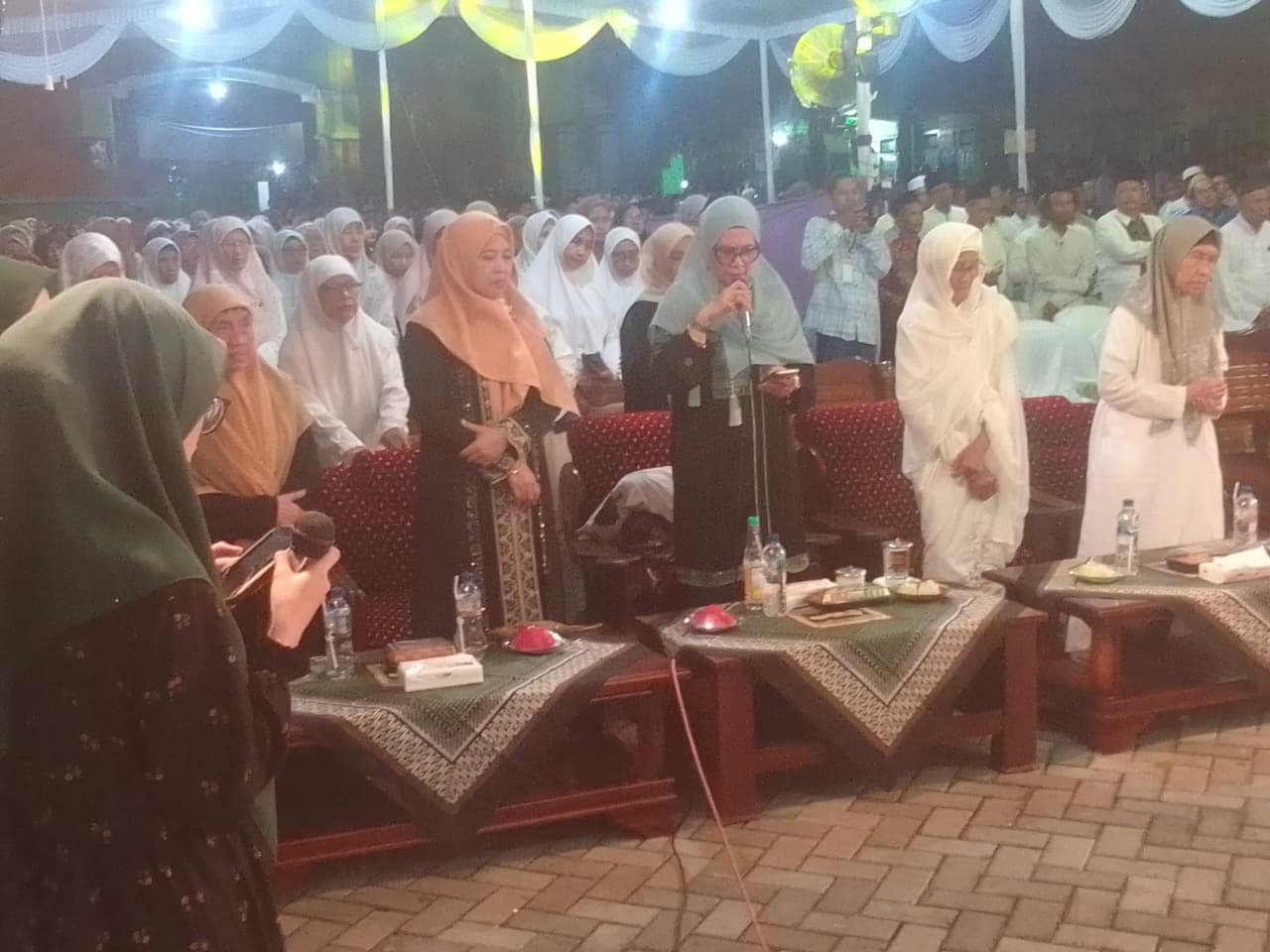 GRESIK, SabdaNews.com- Ribuan Keluarga Santri dan Alumni Gresik Pondok Pesantren Lirboyo Kota Kediri momen bulan Syawal 1447 H. Menggelar Pengajian umum dan Gebyar Shalawat dalam rangka Halal BI Halal. Kegiatan tersebut di pusatkan di Pondok Pesantren Alkarimi Tebuwung Dukun Gresik. Nampak para Alumni dan santri dari Kecamatan di Gresik dengan memakai baju serba putih memadati lapangan Barat Pondok pesantren Alkarimi. (31/03/2026 Malam)